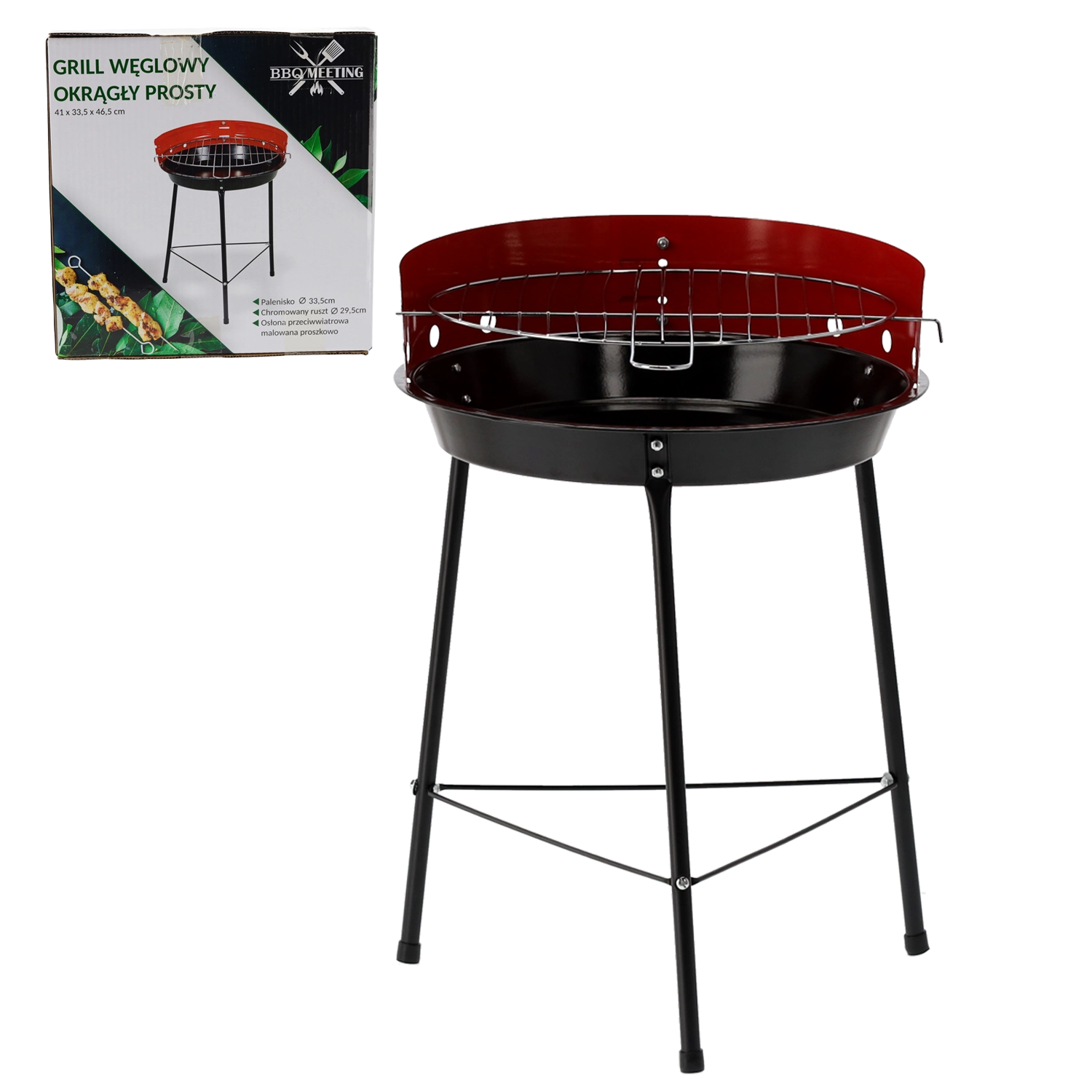 Round portable charcoal grill with wind shield 33.5 cm