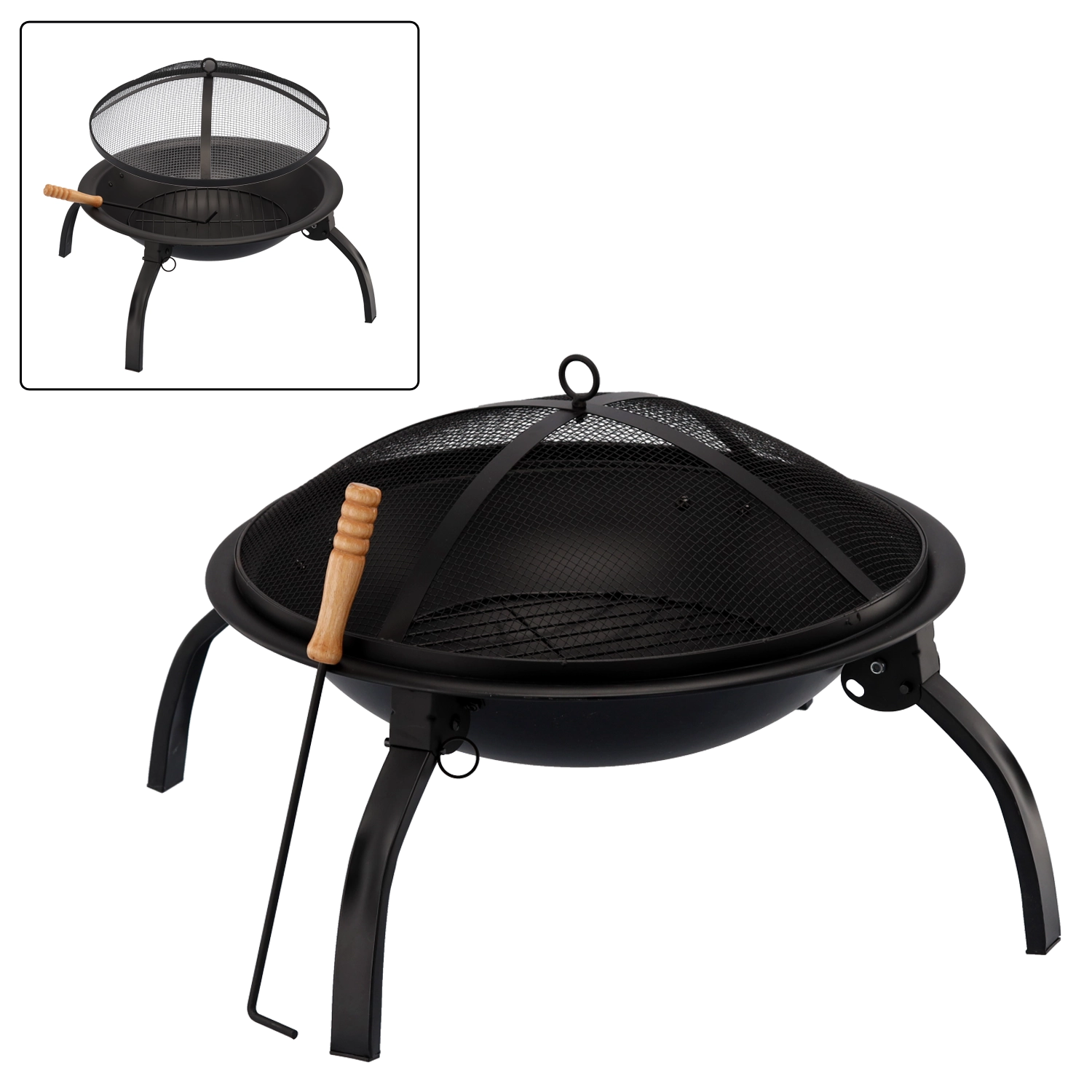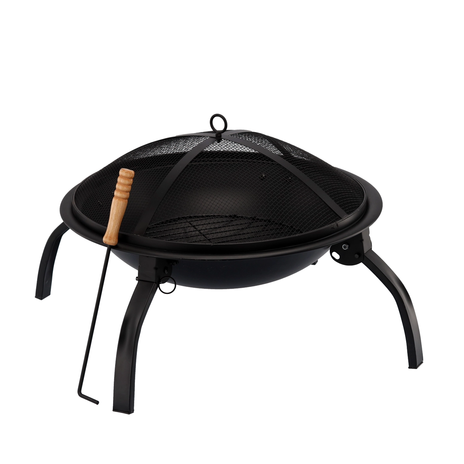 This stylish garden fire pit brings warmth and a cozy atmosphere to any outdoor evening. The sturdy construction, heat-resistant finish, and mesh cover ensure safe burning of wood or charcoal and better control of sparks. Thanks to the folding legs, the fire pit is easy to carry and store when not in use.