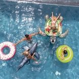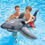 The INTEX inflatable shark brings great fun for kids and adults alike. Thanks to its realistic design and ergonomic shape, it is stable and comfortable to ride. The two sturdy handles ensure a secure grip when getting on and while cruising.