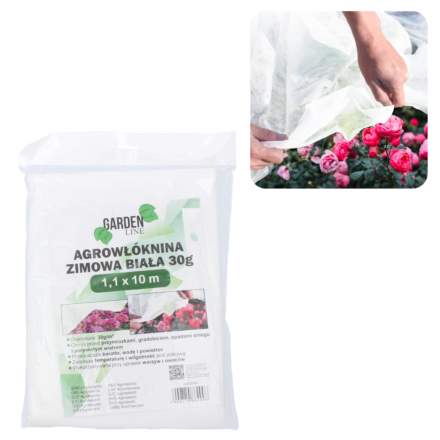 Use: Ideal for overwintering shrubs and young trees, protecting perennials, rock gardens, and sensitive plants during winter and early spring. The 1.1 × 10 m size allows easy customization and quick installation on beds as well as individual plants.