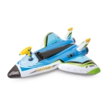 The INTEX inflatable airplane is an awesome water toy that combines comfort, safety, and action-packed fun. Thanks to the integrated water gun, kids can spray water right from the cockpit and enjoy endless play in the pool or at the lake. The airplane shape supports stable, comfortable seating, while the practical handle helps maintain balance.
