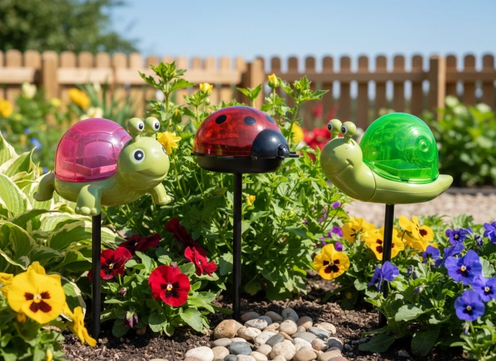 These decorative solar lamps turn any bed into a cozy spot. Simply stake them into the soil; they charge by sunlight during the day and switch on automatically in the evening. The playful animal design gives your garden a charming personality while providing subtle wayfinding light.
