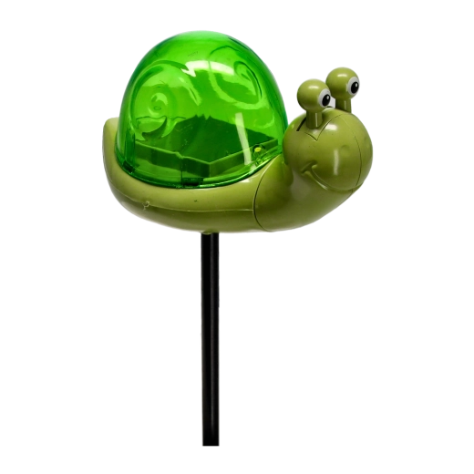 The turtle, snail, and ladybug feature colorful semi-translucent “shells” that add a cheerful accent to any planting and gently backlight it with warm light in the evening.