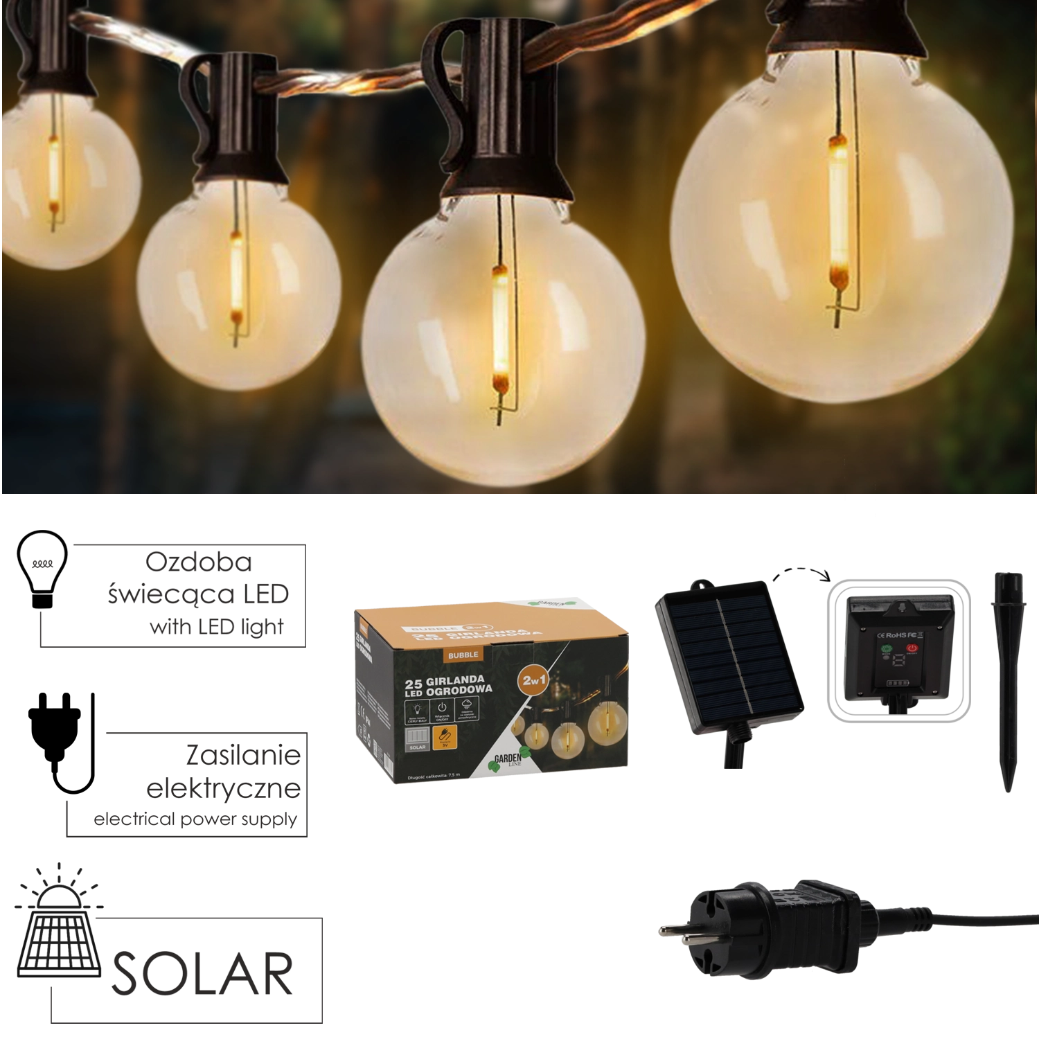 - Outdoor light garland 2-in-1 (solar / low-voltage 3 V)