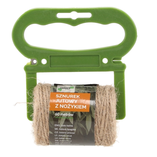 A strong and natural jute twine with a length of 60 m and a thickness of 2 mm, ideal for home, garden, and workshop. It is weather-resistant, 100% biodegradable, and comes with a practical cutter for easy and quick trimming.