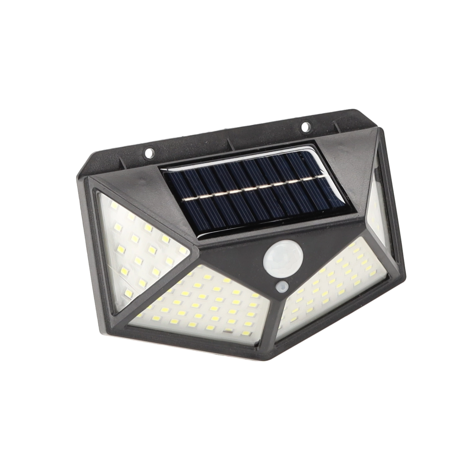 A compact solar wall light with 100 LEDs and a PIR motion sensor delivers bright cool white illumination wherever you need it. Thanks to solar power and automatic activation on motion detection, it’s ideal for entrances, walkways, and patios, saving energy without cabling.