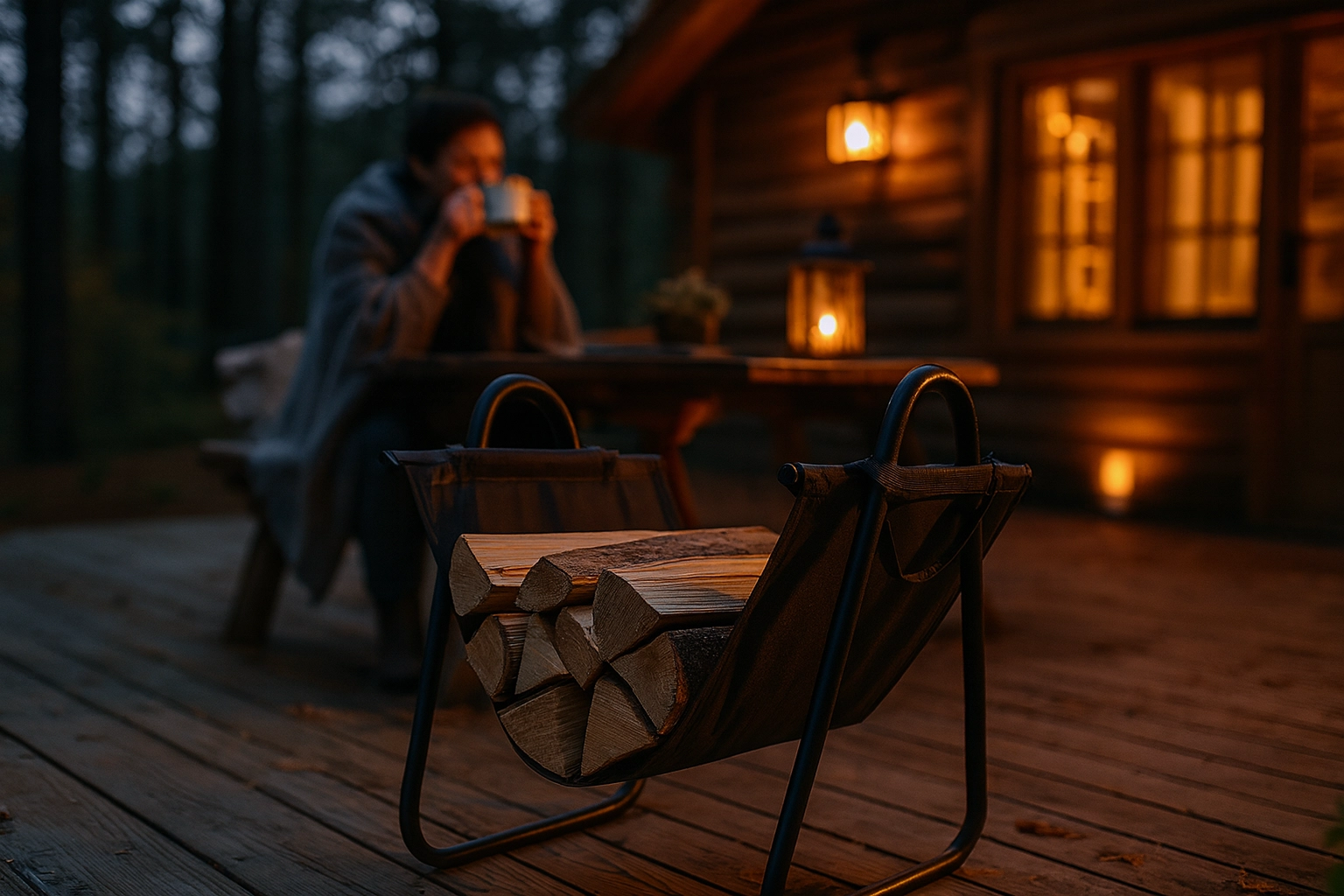 - 2‑in‑1 set: robust rack + highly durable firewood bag