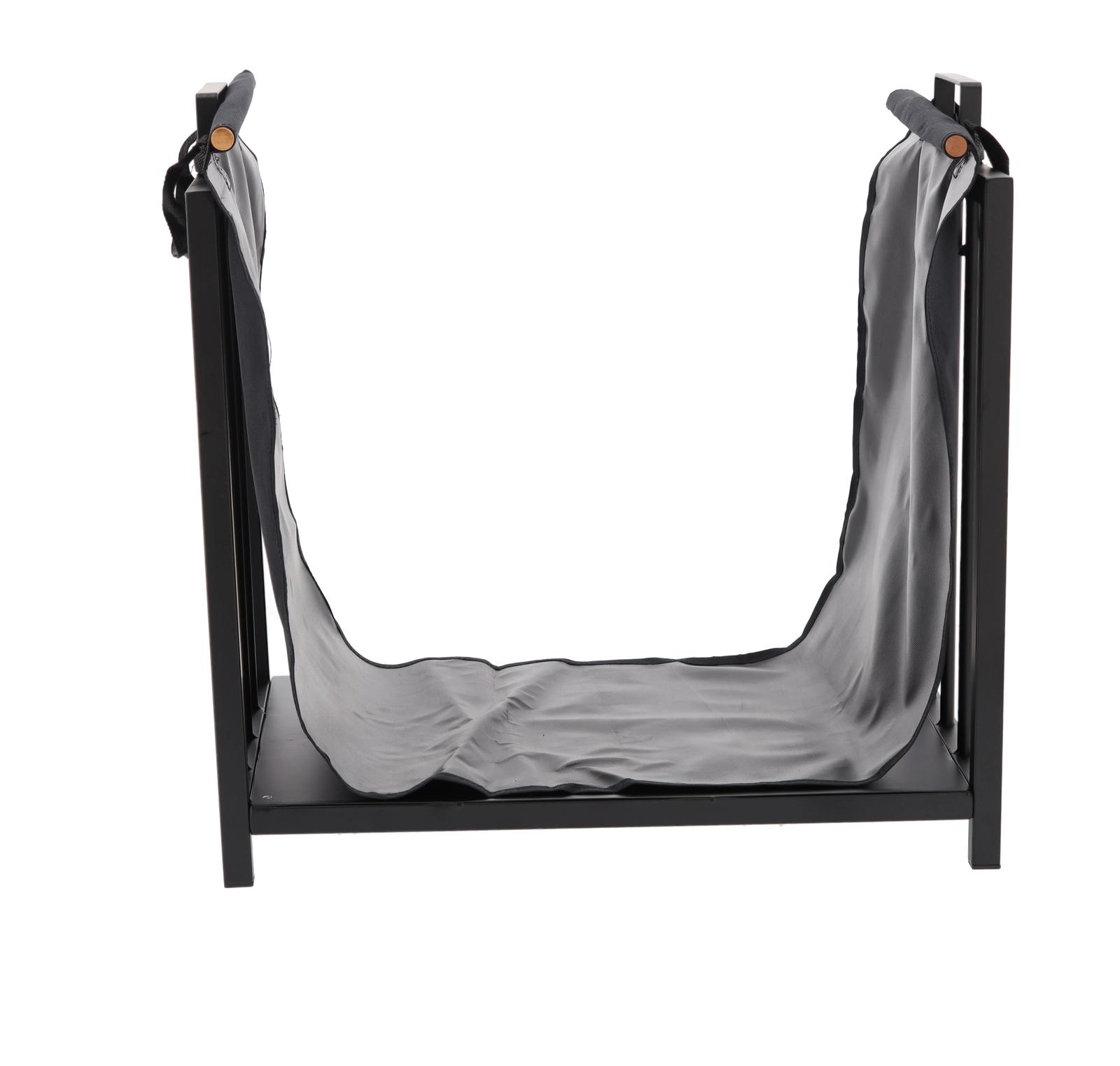 The fabric insert with handles lets you comfortably carry logs from outside to inside while keeping the fireplace area free of splinters and dust.