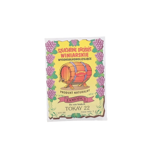 High-quality dried wine yeast Tokay 22 for producing white and fruit wines. Thanks to carefully selected strains, it ensures complete fermentation, high tolerance to sugar and CO₂, and enables up to 17% alcohol with a clean aromatic profile and rich taste.