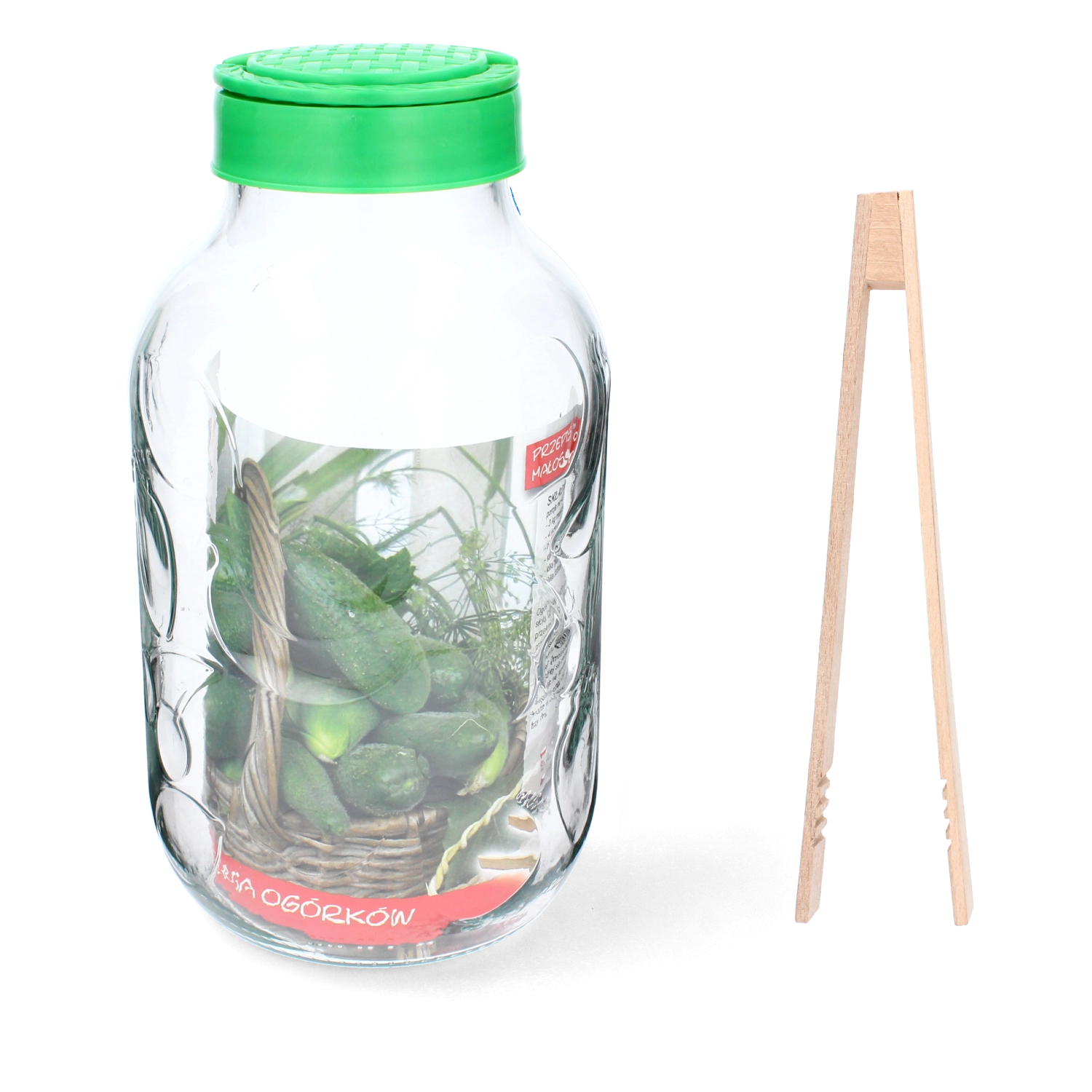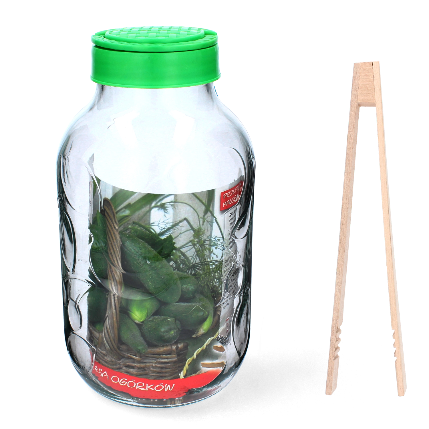 This 5-liter jar is a great choice for home canning and food storage. The sturdy plastic lid ensures a good seal, keeping your treats aromatic and fresh for longer. Thanks to the included recipe and fruit tongs, handling ingredients is more convenient and cleaner.