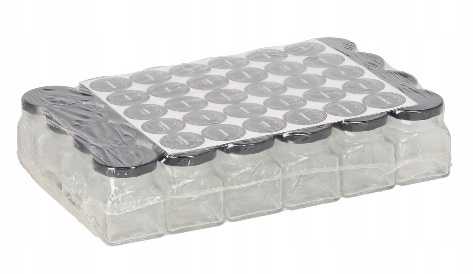 A set of 24 square jars made of clear glass keeps your spices always at hand and neatly arranged. The uniform look suits both cozy and modern kitchens.