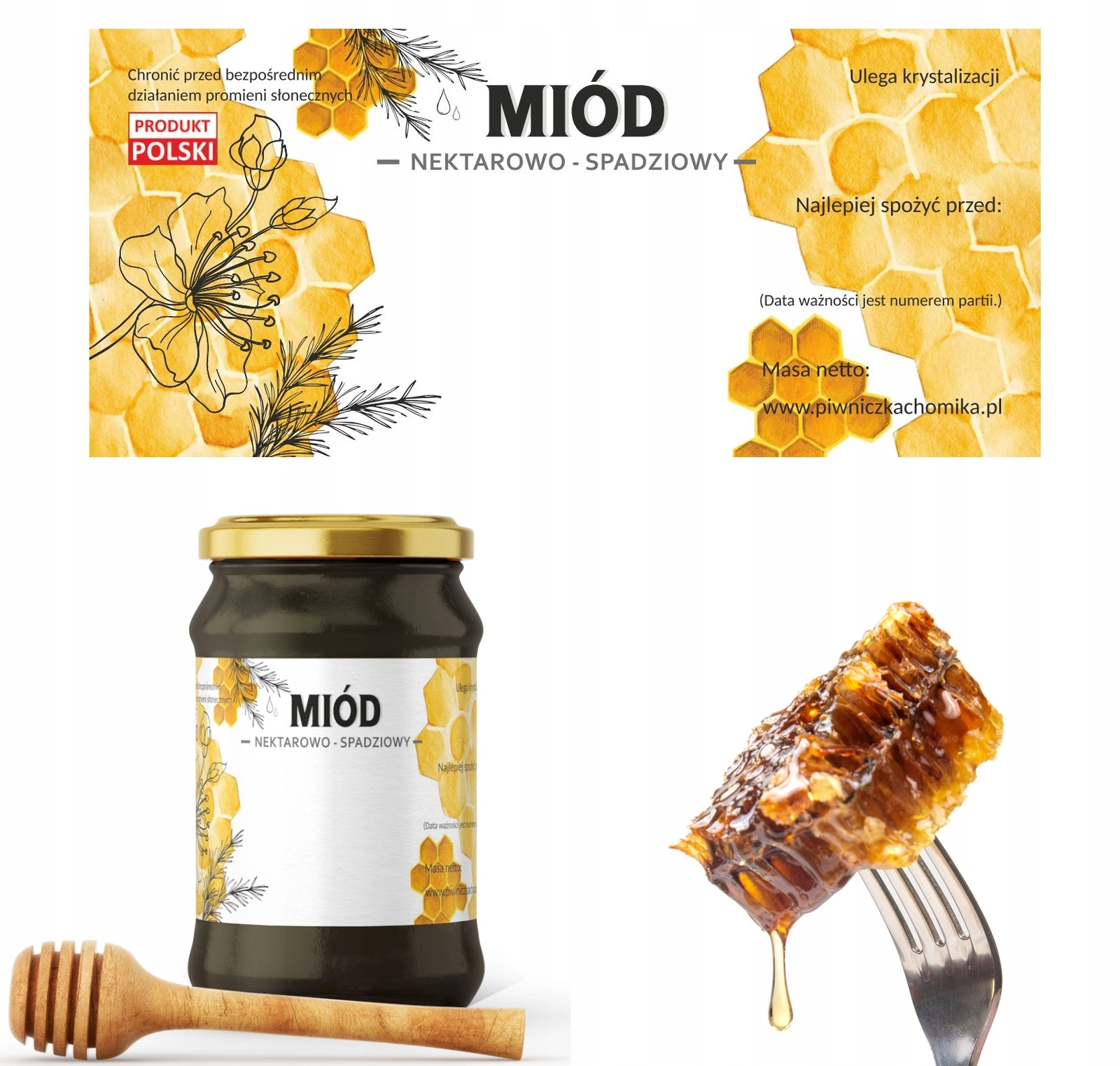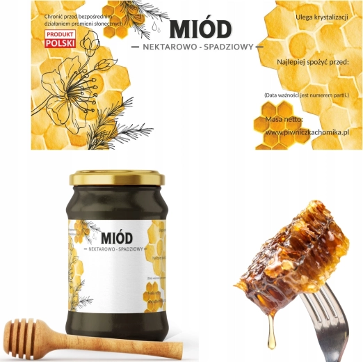 Label your jars professionally and clearly. These labels for nectar–honeydew honey have the ideal size of 116 × 50 mm, so they fit most standard jars comfortably and remain easy to read. Users can easily distinguish the honey type and expiry date, increasing product transparency and appeal.