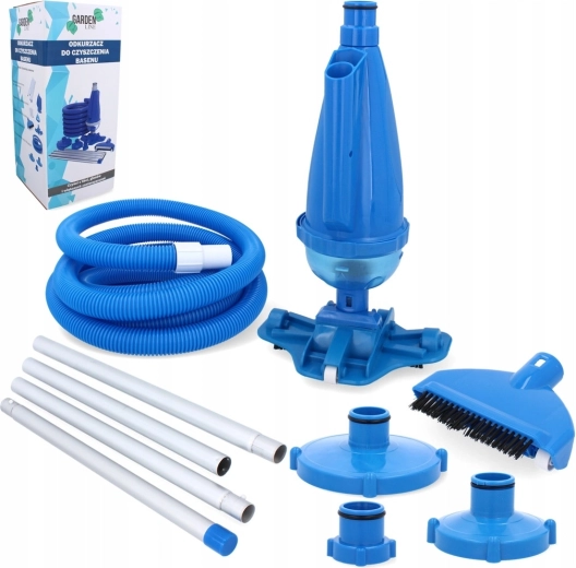 This practical manual pool vacuum set combines easy use with effective results. Thanks to the interchangeable bristle tips and wheeled head design, it easily picks up sand, leaves, and fine sediment. The transparent debris basket traps waste before it reaches the filter and allows quick emptying.