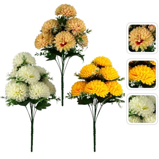 This artificial chrysanthemum bouquet is an ideal choice for long-term decoration of homes, offices, and commercial spaces. Thanks to the realistic detailing of the flowers, leaves, and grasses, it looks lifelike, and without watering or special care, it maintains its fresh appearance all year round.