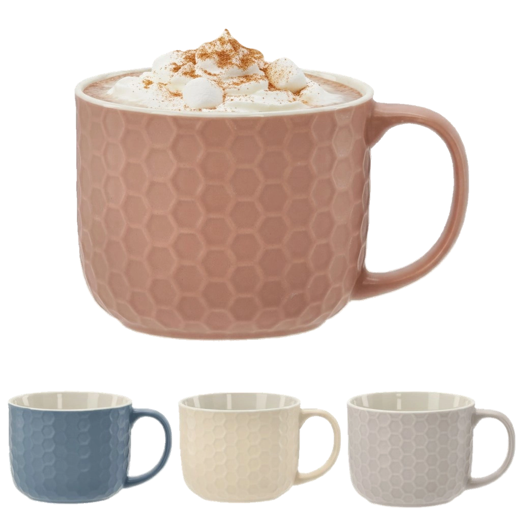 Treat yourself to a spacious mug that combines modern looks with practicality. The textured honeycomb-style surface not only looks great but also improves grip confidence. The generous 480 ml capacity is perfect for lattes, loose-leaf tea, cocoa, and herbal drinks.