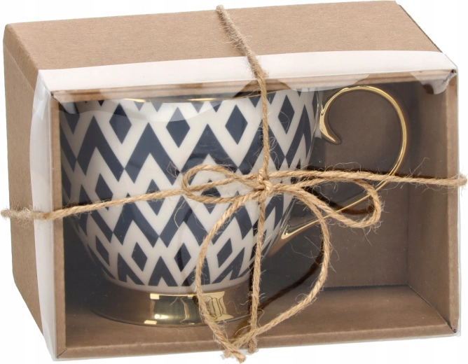 The mug comes in an attractive box with a window and string—ideal as an elegant gift with no extra wrapping needed.