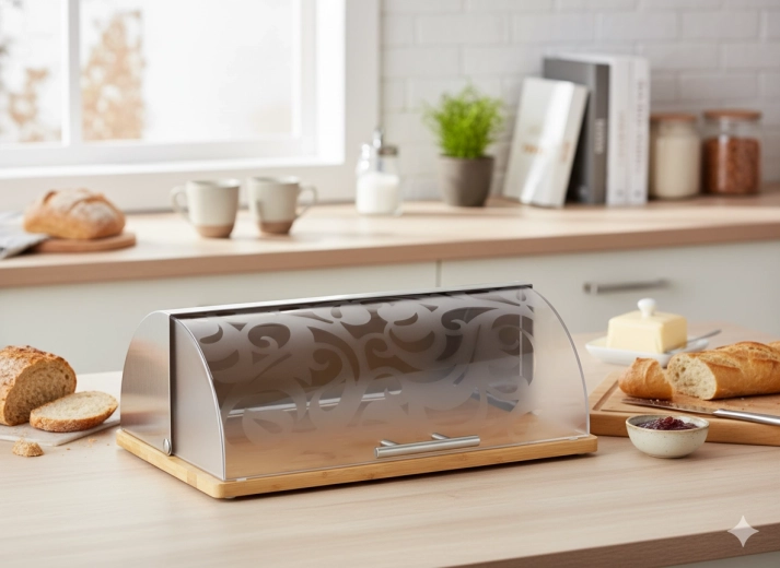 home storage of bread, rolls, and pastries on the kitchen counter