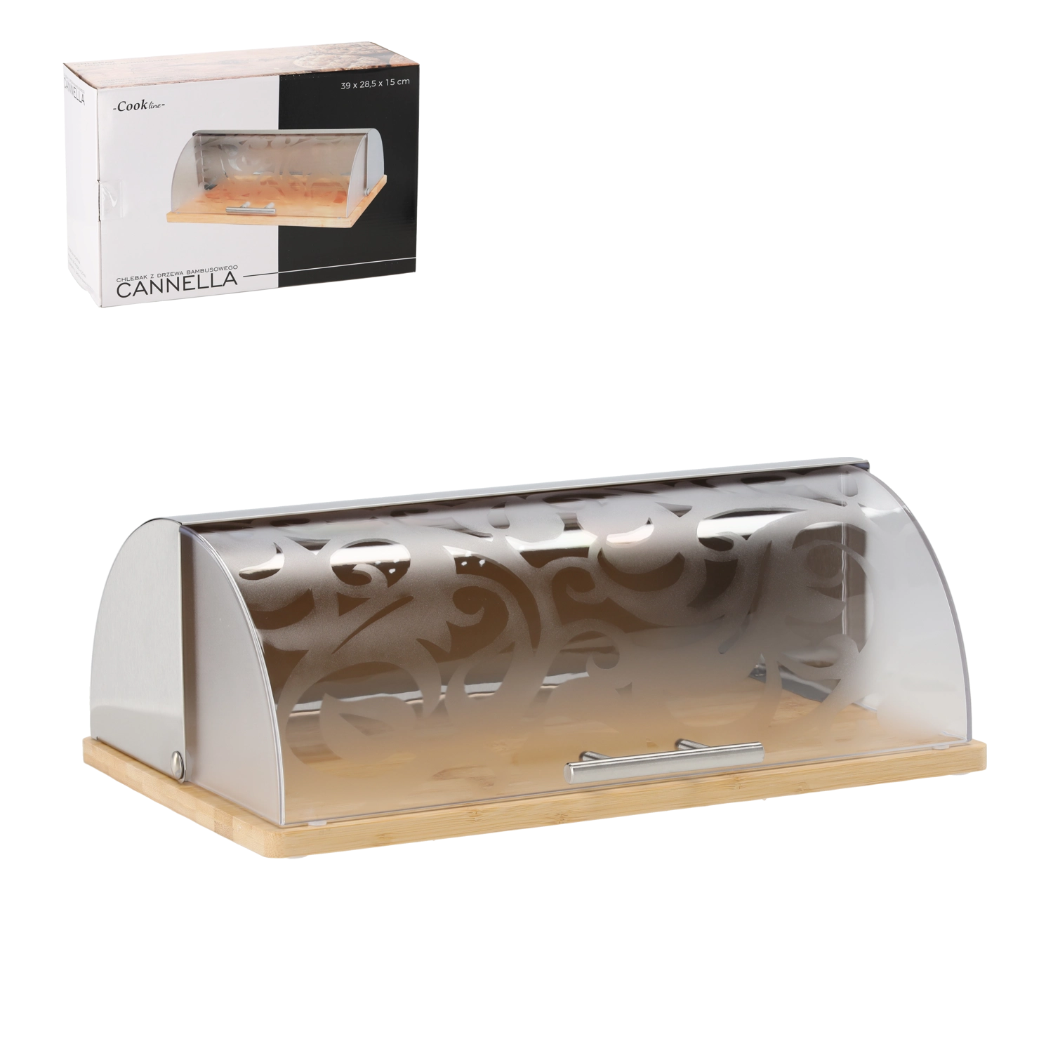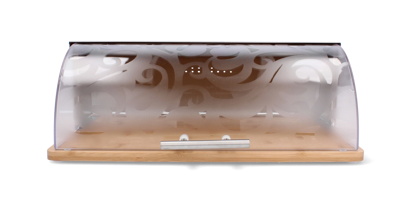 The elegant CANELLA bread box combines natural bamboo with a translucent acrylic roll-top lid featuring a subtle pattern. Thanks to the ventilation holes, your baked goods stay fresh longer, the convenient roll-top opening ensures quick access, and the sturdy bamboo base brings both style and order to your kitchen.