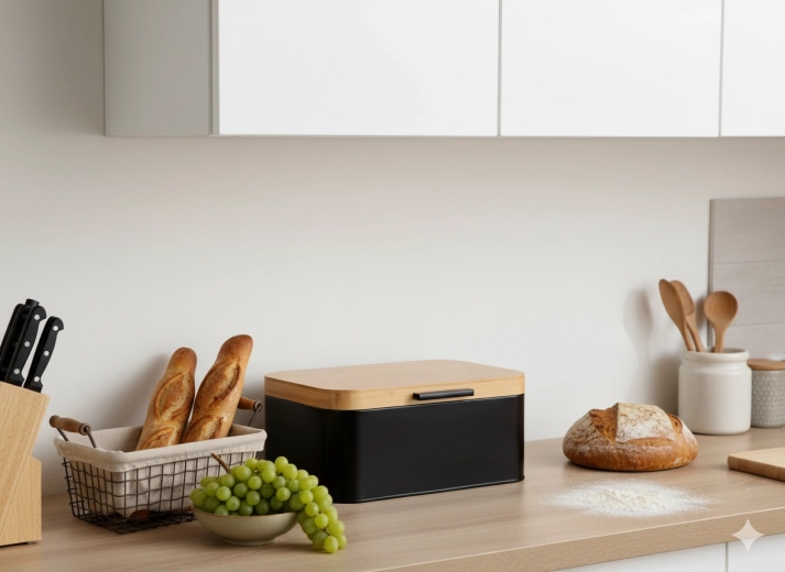 Its minimalist design pairs easily with industrial, Scandinavian, or classic kitchen styles. The bread bin is easy to clean—just wipe with a damp cloth—and its compact dimensions help keep your countertop tidy.