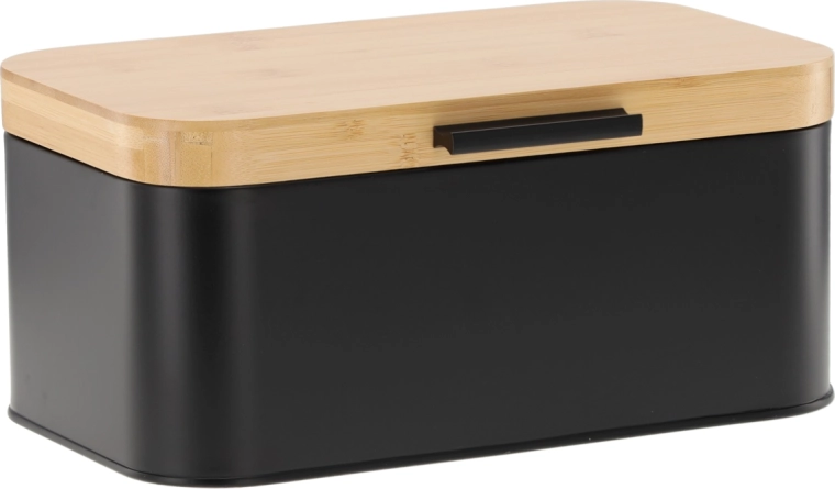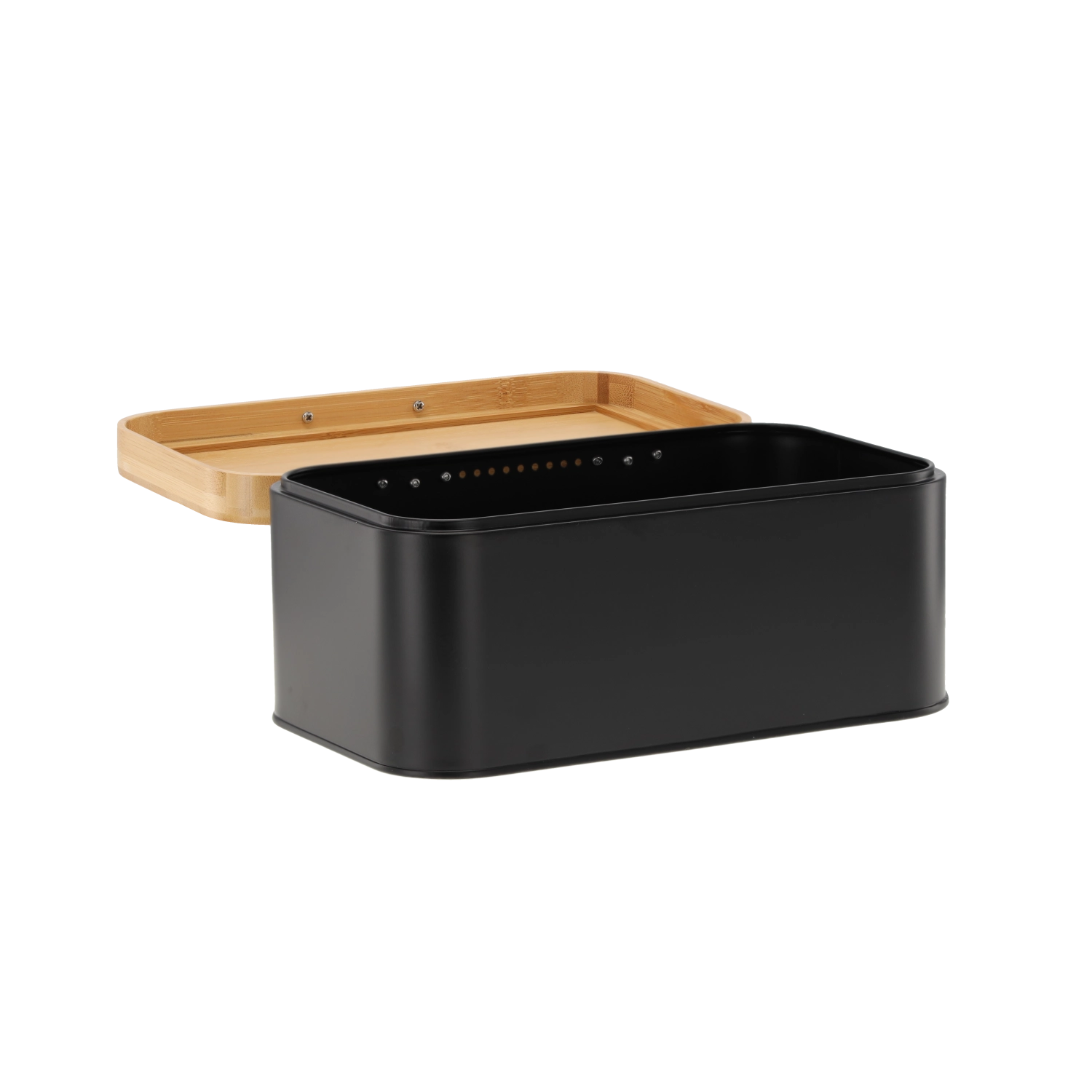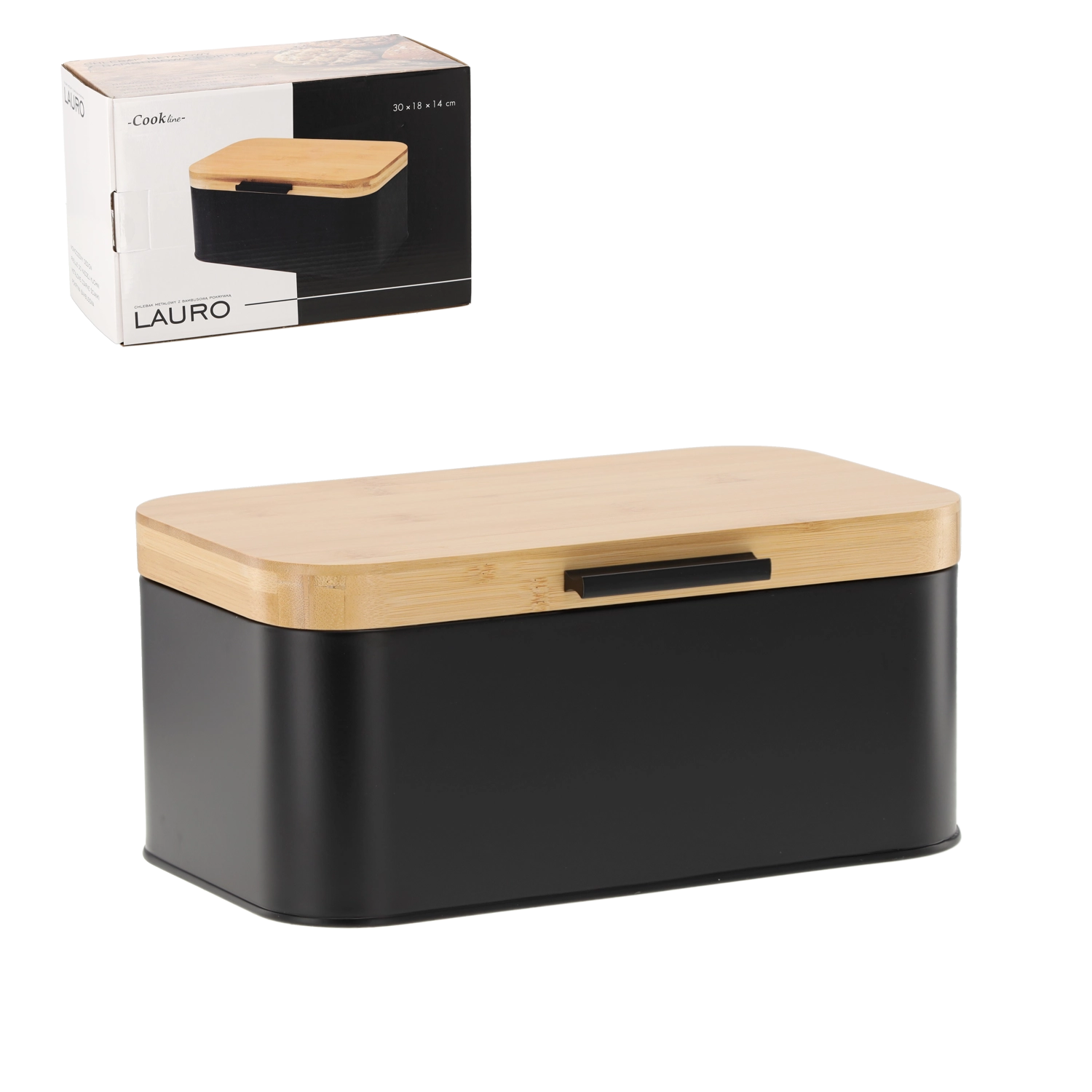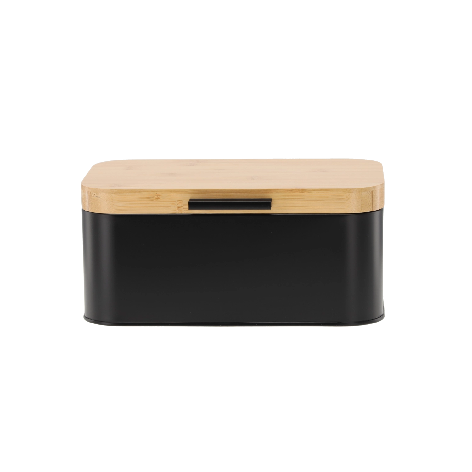 Lauro Bread Bin, Metal with Bamboo Lid, Black