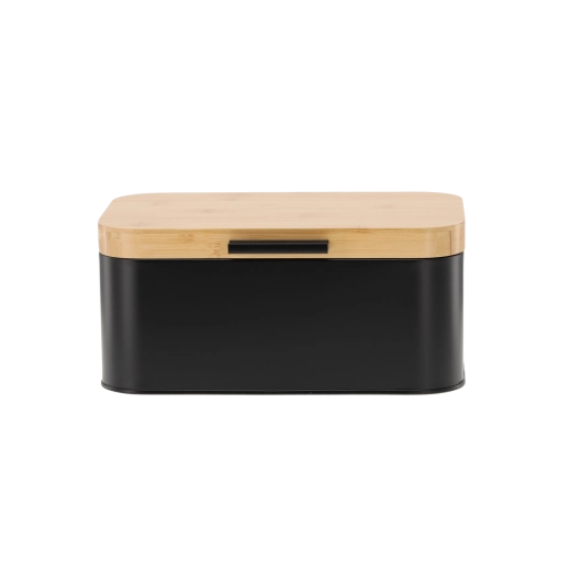Keep your baked goods fresh for longer while adding order and style to your kitchen with the Lauro bread bin. It combines matte black metal with a natural bamboo lid for a modern look, is spacious, durable, and fits perfectly on any countertop.