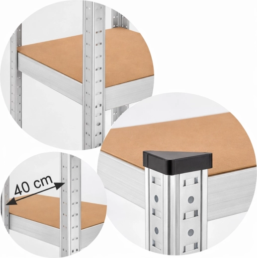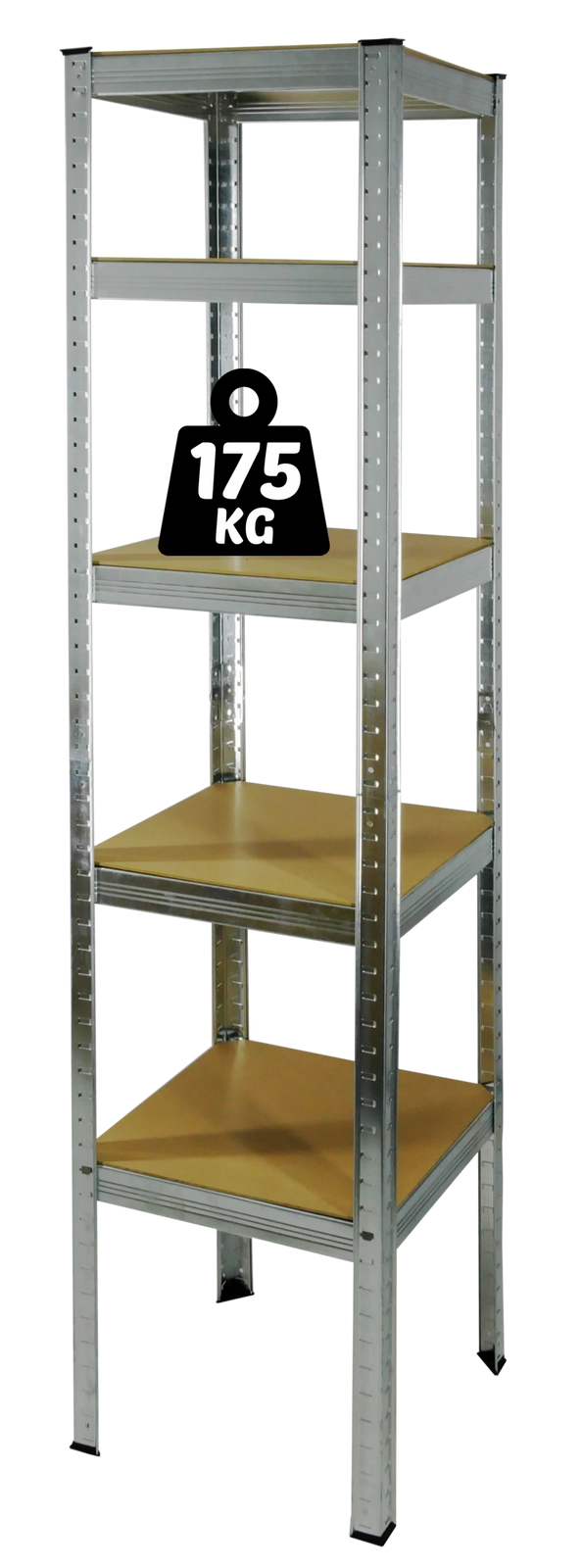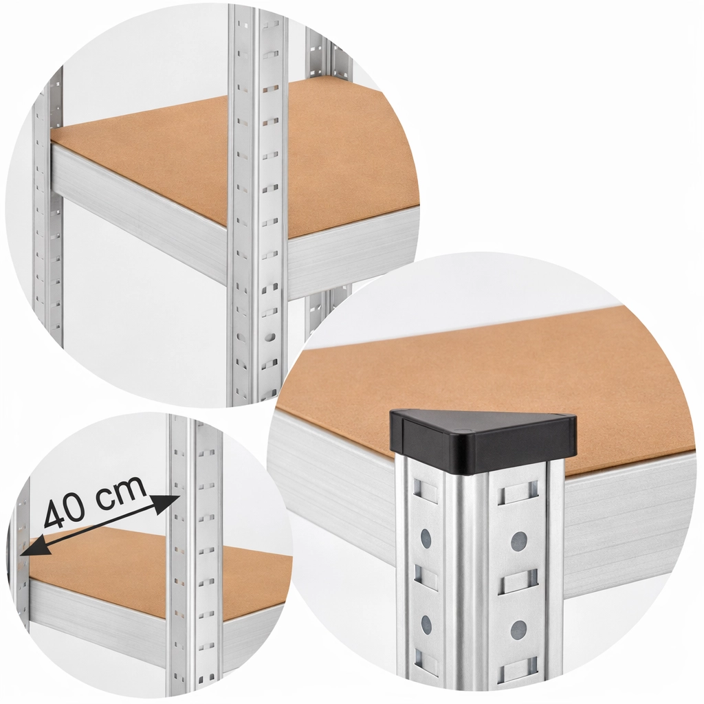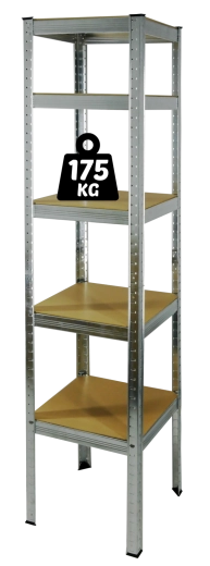 This five-tier metal shelving unit is ideal for a garage, cellar, workshop, or warehouse. Thanks to its sturdy steel construction and MDF shelves, it offers high stability and a load capacity of up to 175 kg per shelf. Easily organize tools, materials, supplies, and documents—with quick and easy assembly.