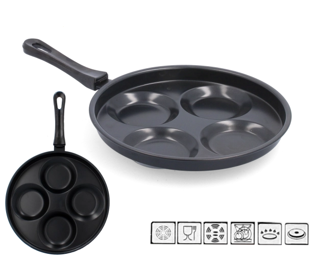 Practical 24 cm egg pan made of durable carbon steel with a nonstick coating for easy frying without sticking. The ergonomic plastic handle ensures a comfortable and safe grip, while the heat-resistant exterior boosts durability for everyday use.
