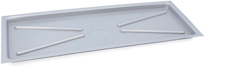 This gray plastic drip tray is designed to sit under a dish rack with a width of 50 cm. With dimensions of 51 × 19 × 2.5 cm, it reliably catches drips and prevents water from running onto the worktop. The lightweight yet sturdy construction ensures long service life and easy handling.