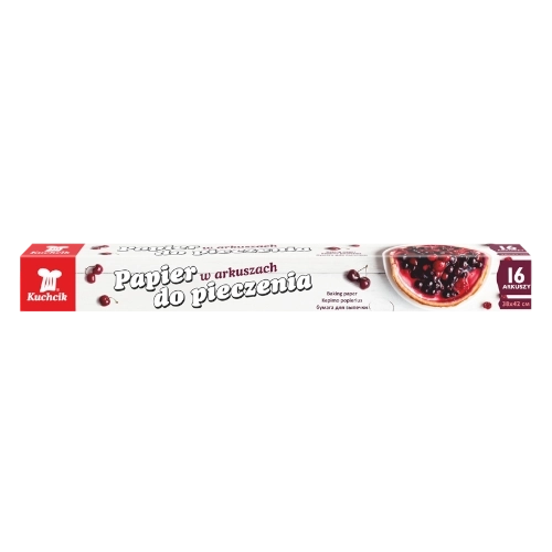 Practical baking paper in sheets measuring 38 × 42 cm with a double-sided silicone coating ensures non-stick baking without the need for grease. It is heat-resistant up to 220 °C, suitable for the oven, microwave, and for freezing. Odorless and hygienic, ideal for pies, cookies, pizza, and fries.