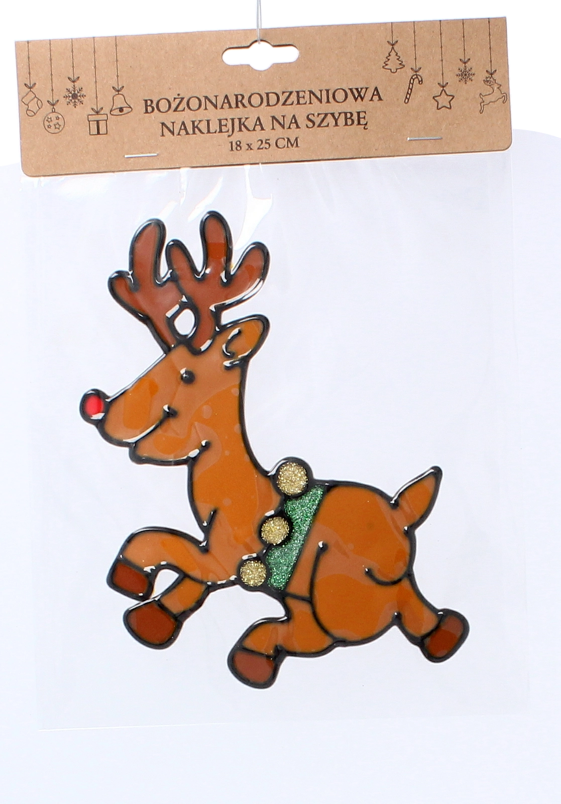 This festive set of window stickers brings a colorful array of Christmas themes – reindeer, candles, bells, snowmen, and Santa. Thanks to the stained-glass style and glittering details, they create a magical effect on glass and beautifully brighten interiors or shop windows.