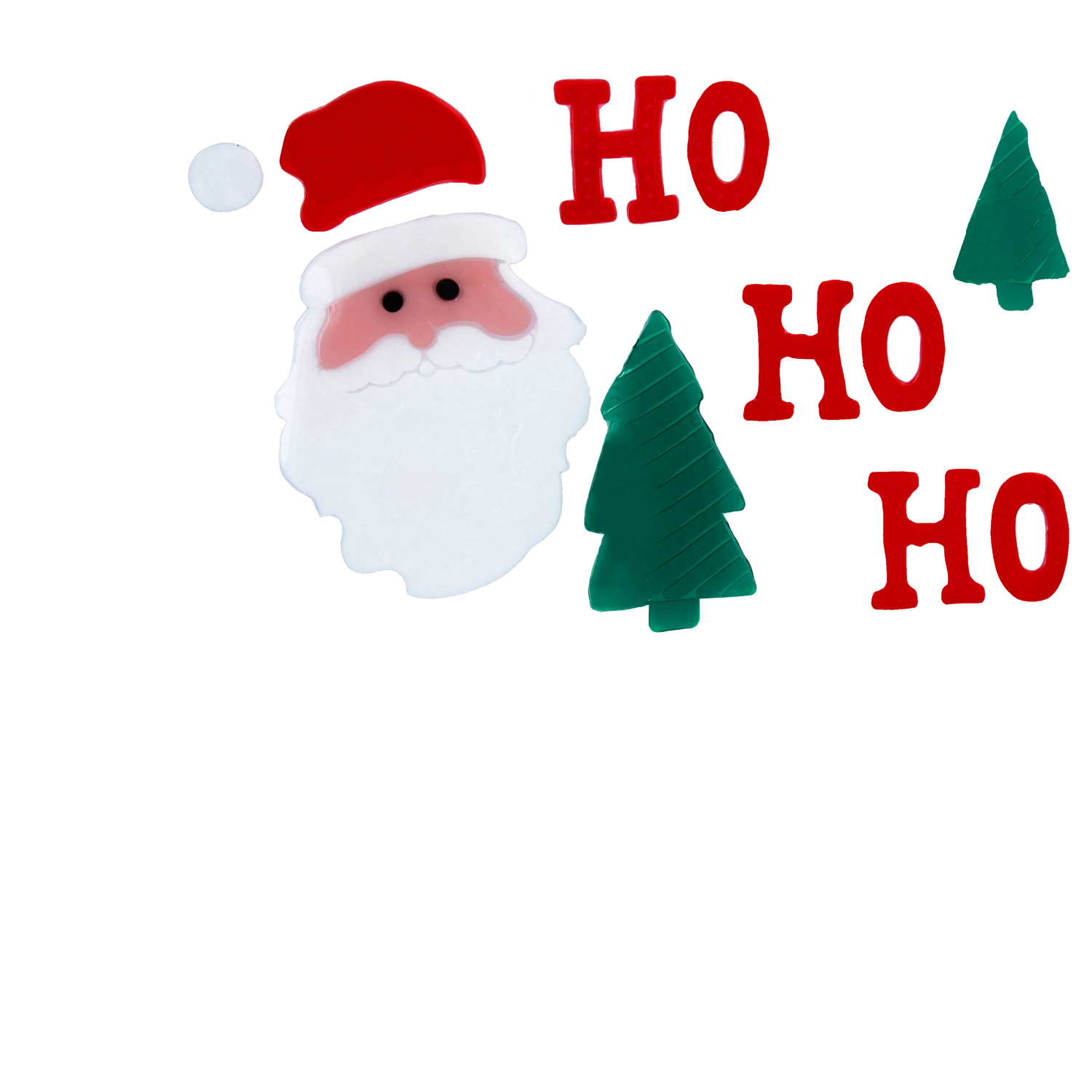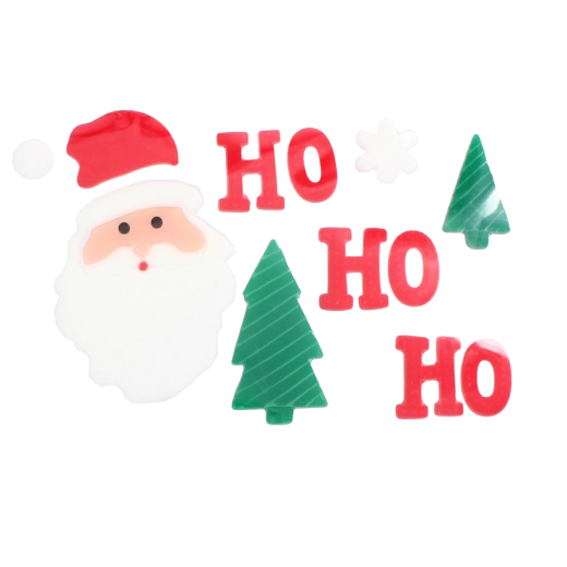 The traditional HO HO HO text and SANTA’s face instantly set a festive mood. Bright colors shine in daylight and pair perfectly with the other motifs.