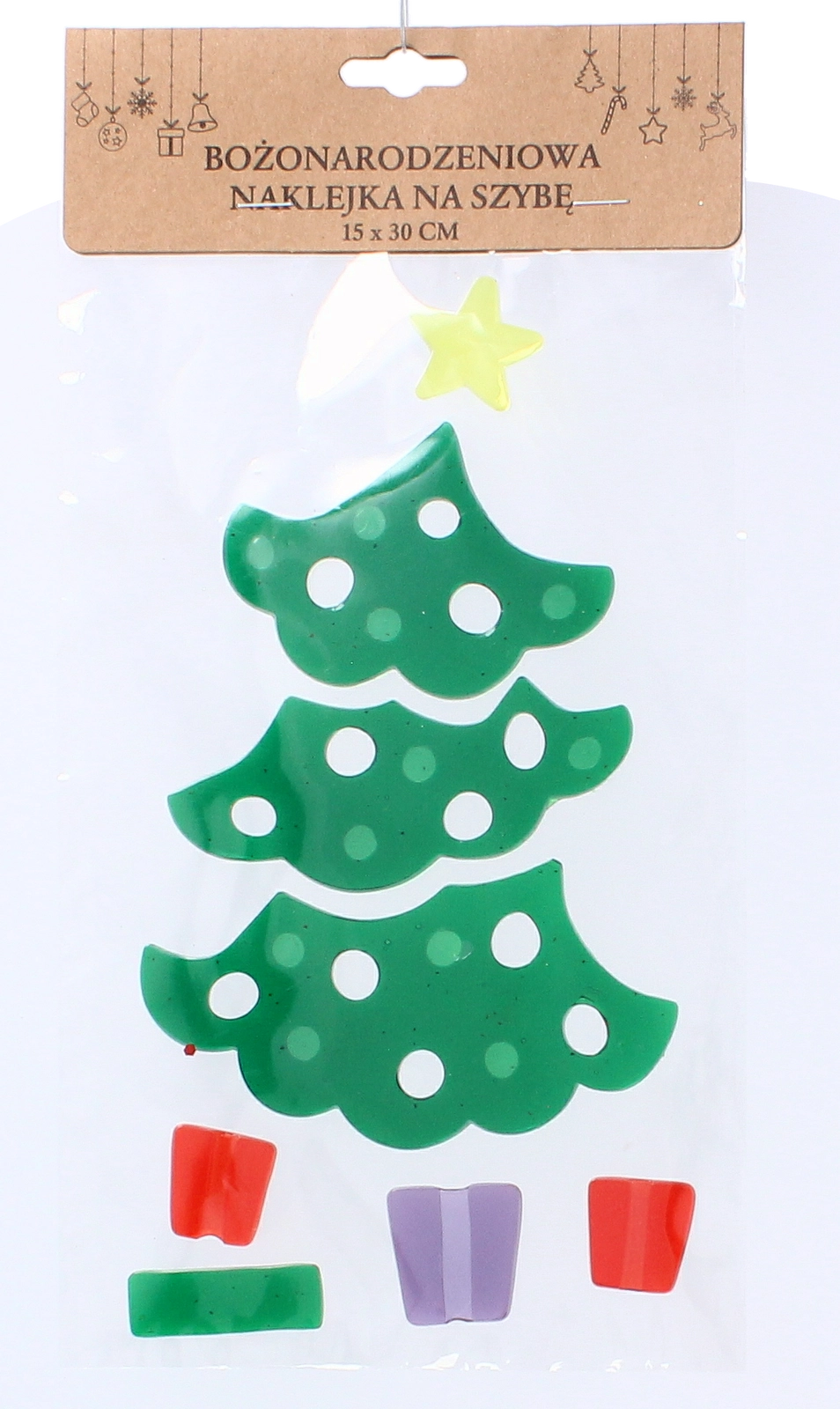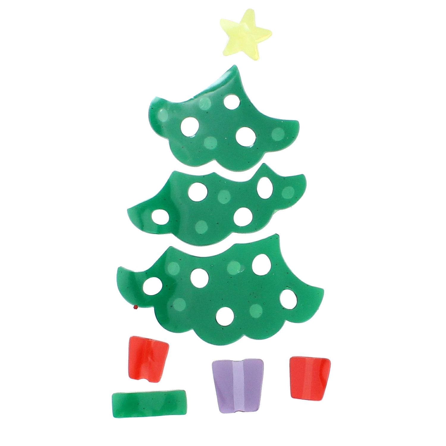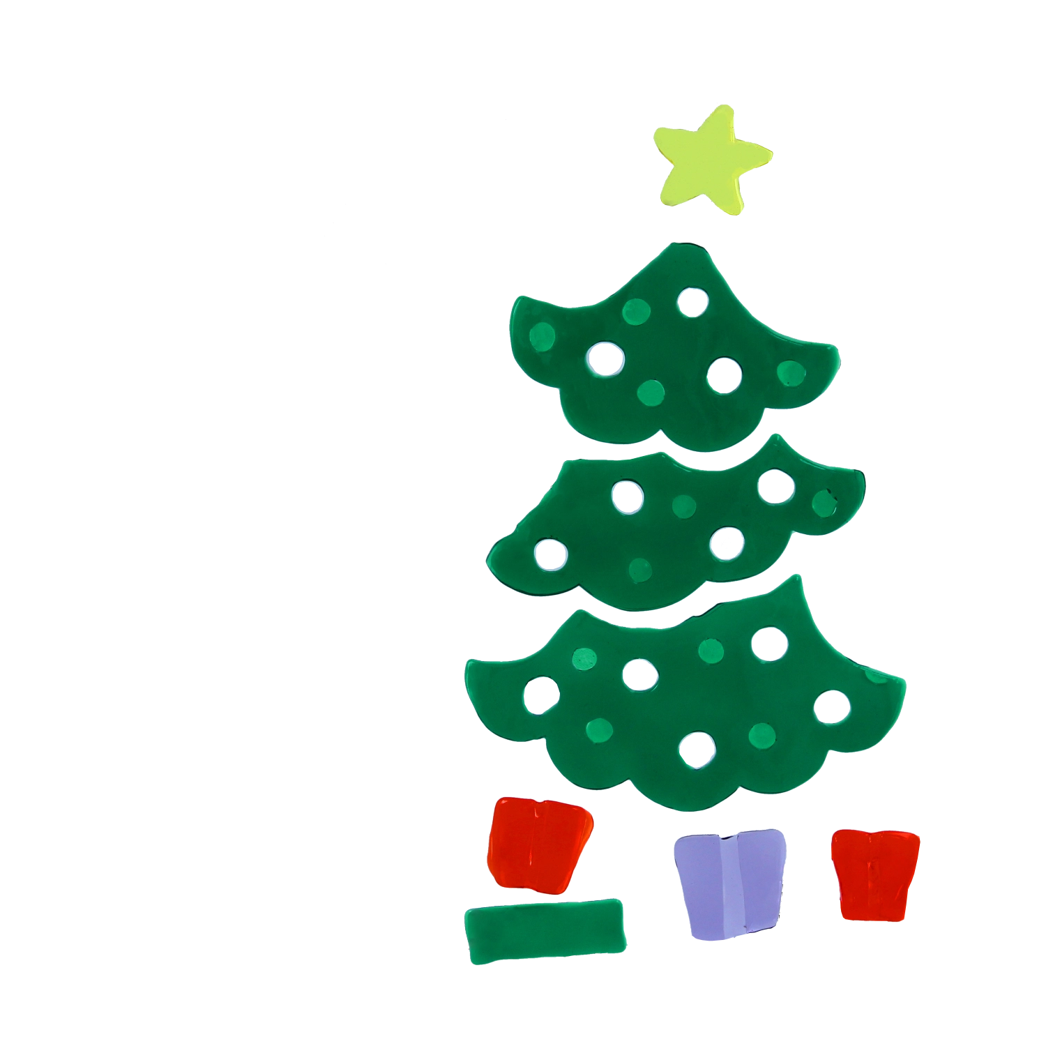 Easily build a tree from separate segments, topped with a yellow star and gifts at the base. Ideal for creative arrangements on kids’ room and living room windows.