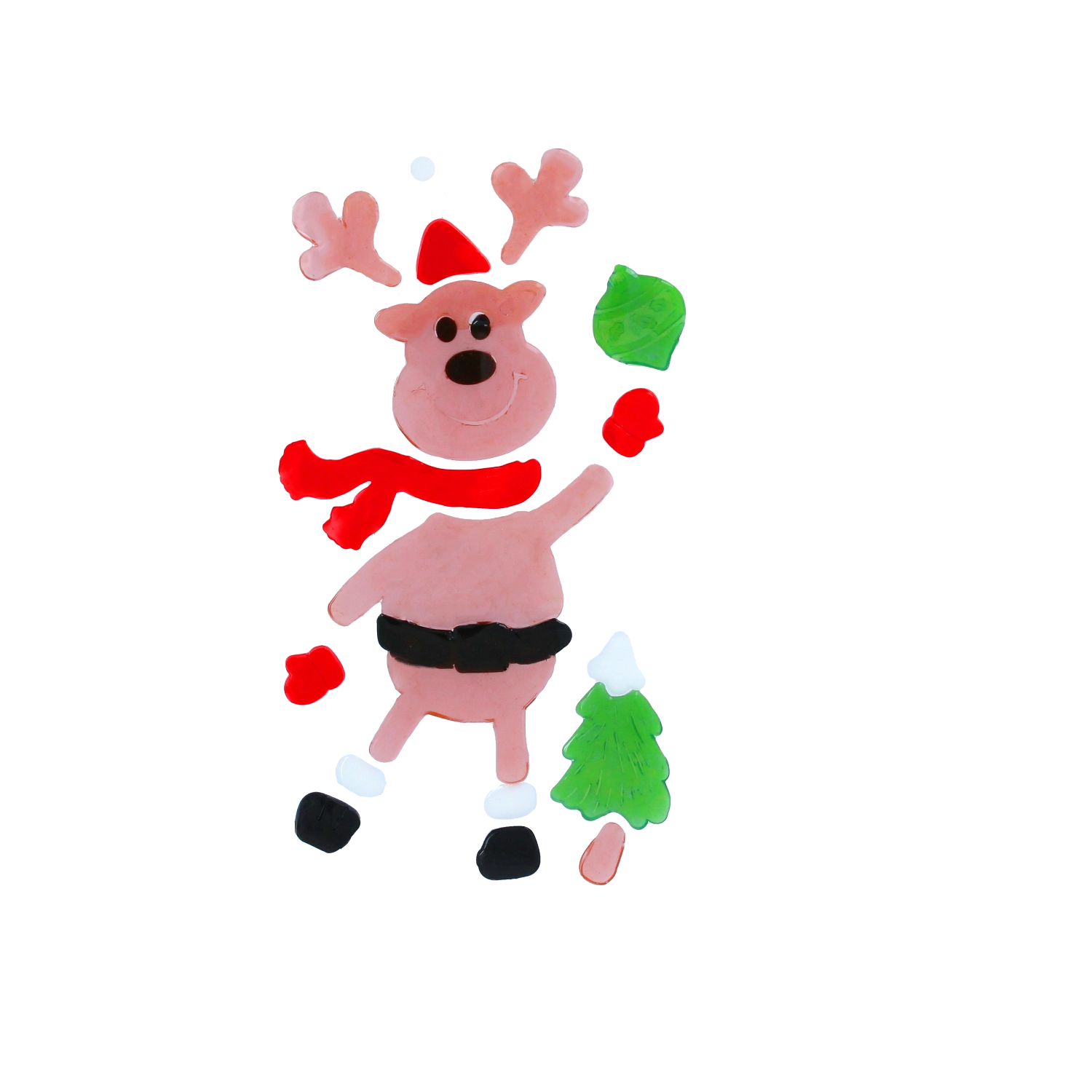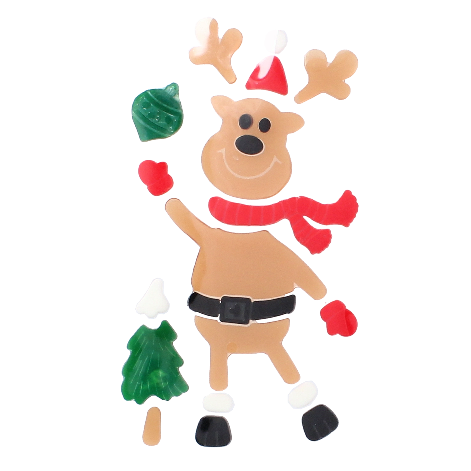 Assemble a cute reindeer with a scarf and hat, add a tree or a star, and create a cheerful winter scene. Pieces can be rearranged freely and reused.