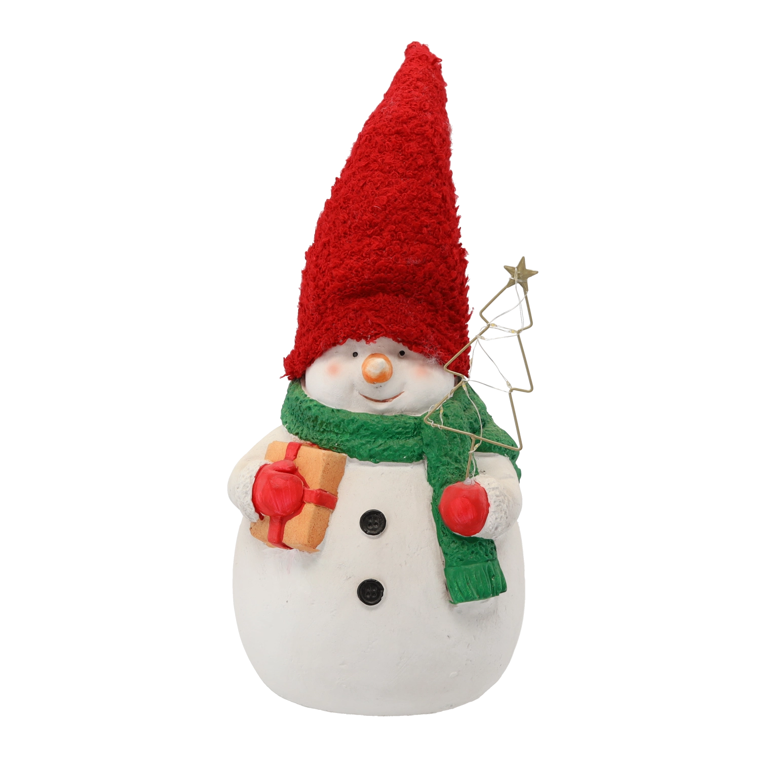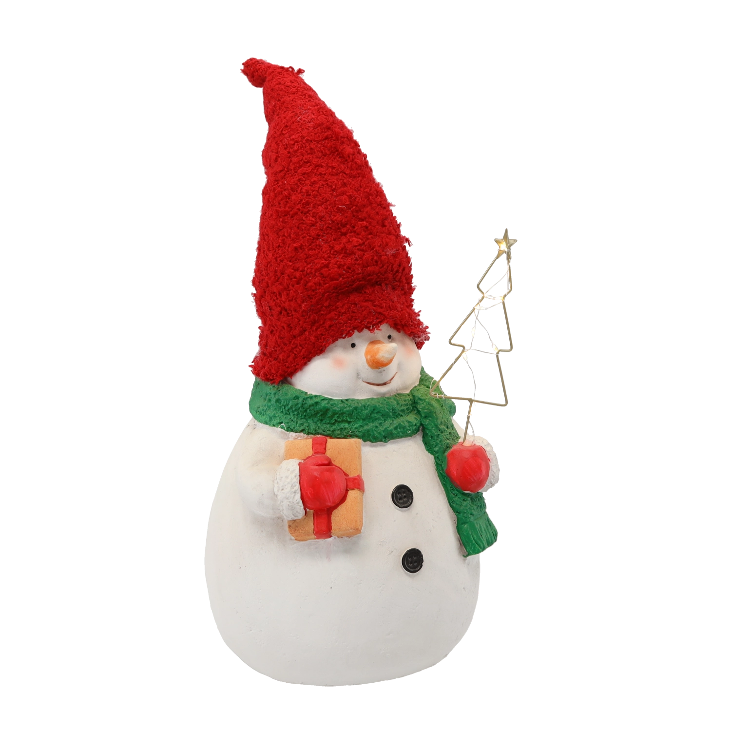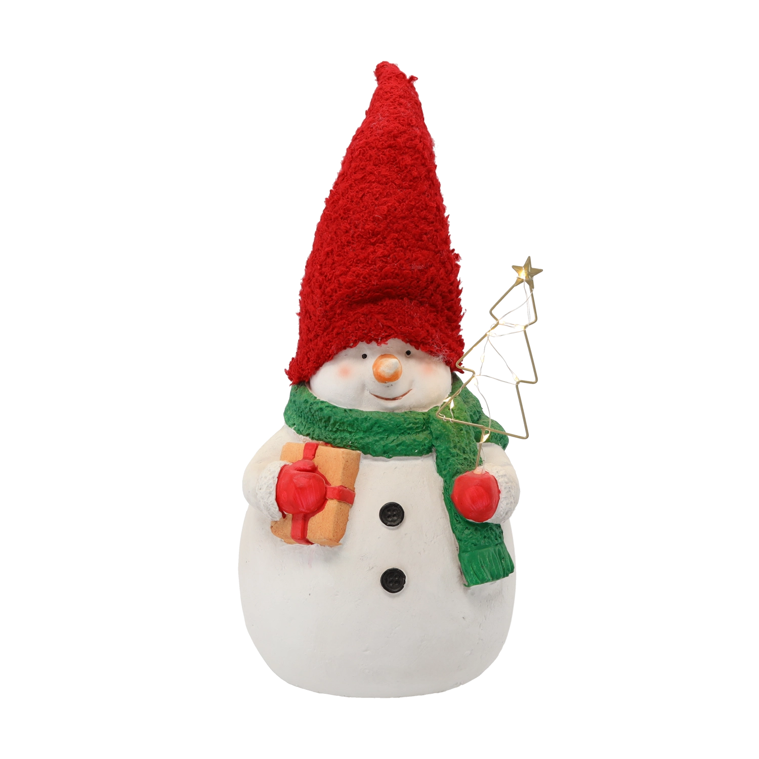 A charming Christmas snowman figurine with a stylish red hat and gentle LED lighting brightens up any table or shelf. Thanks to the detailed craftsmanship, cheerful colors, and instant battery-powered operation, it creates a cozy festive atmosphere at home or in the office.