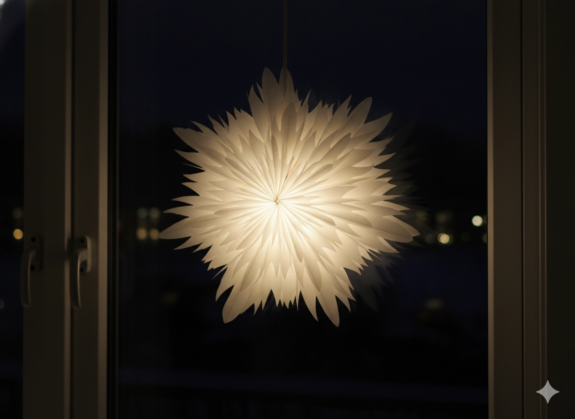White paper beautifully diffuses warm light, giving your interior a soft, festive feel—ideal for windows, above a table, or in the living room.