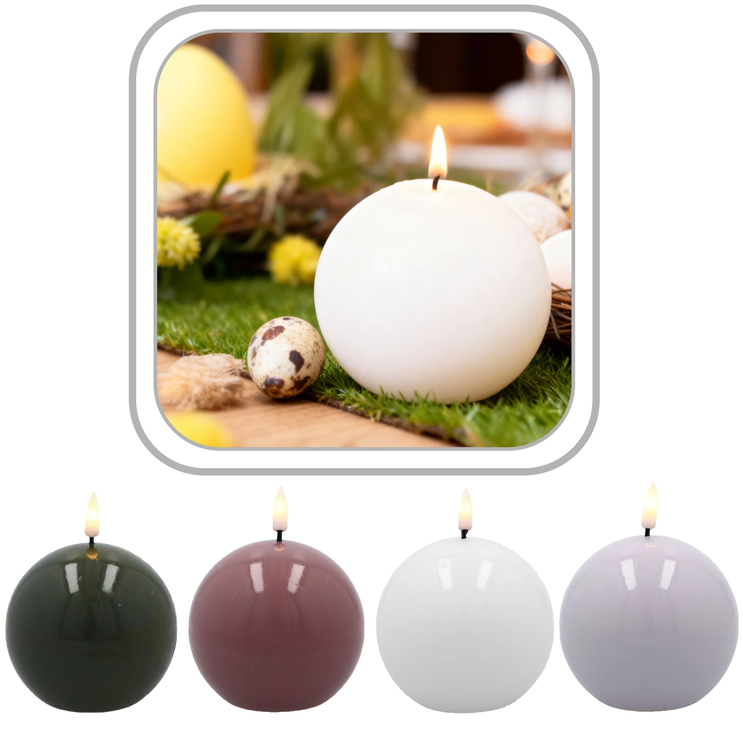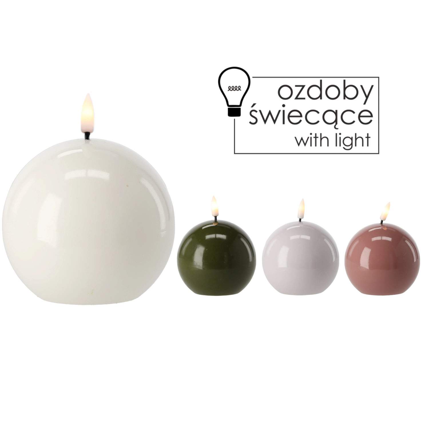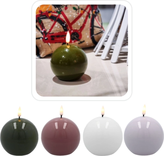 LED wax sphere 8.5 cm – decorative candle with realistic flame