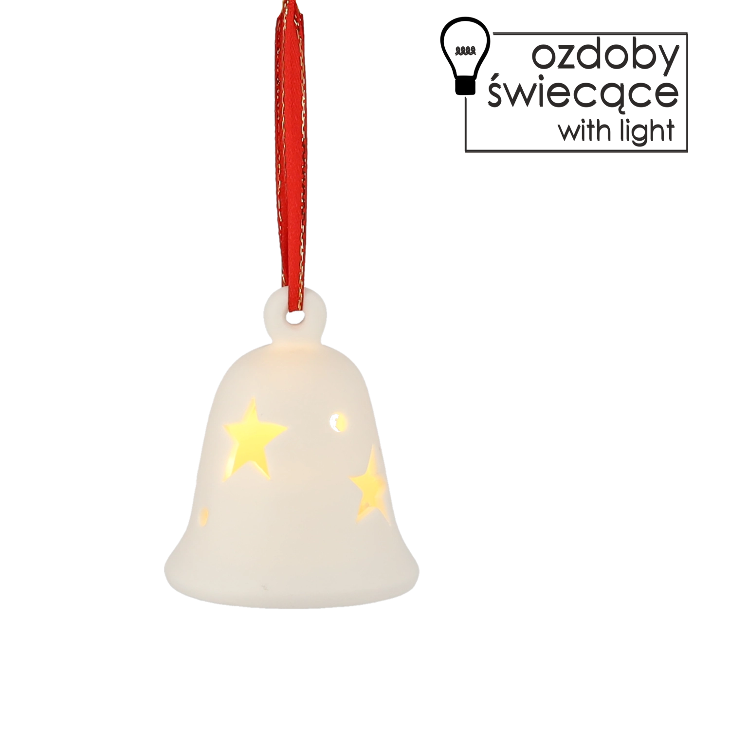 Ceramic Christmas bell with LED lighting, white, 8 cm