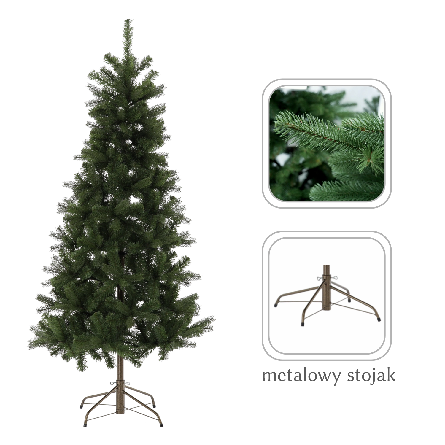 Elegant artificial Christmas tree EXTRALINK Modern, 150 cm tall, offers a realistic look, dense needles, and a stable metal stand. Thanks to its durable materials and easy assembly, it’s an ideal choice for clean, convenient, and stylish holiday decorating without fallen needles.