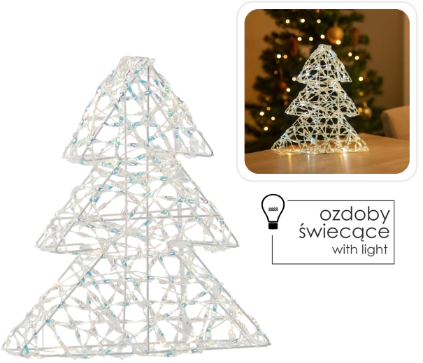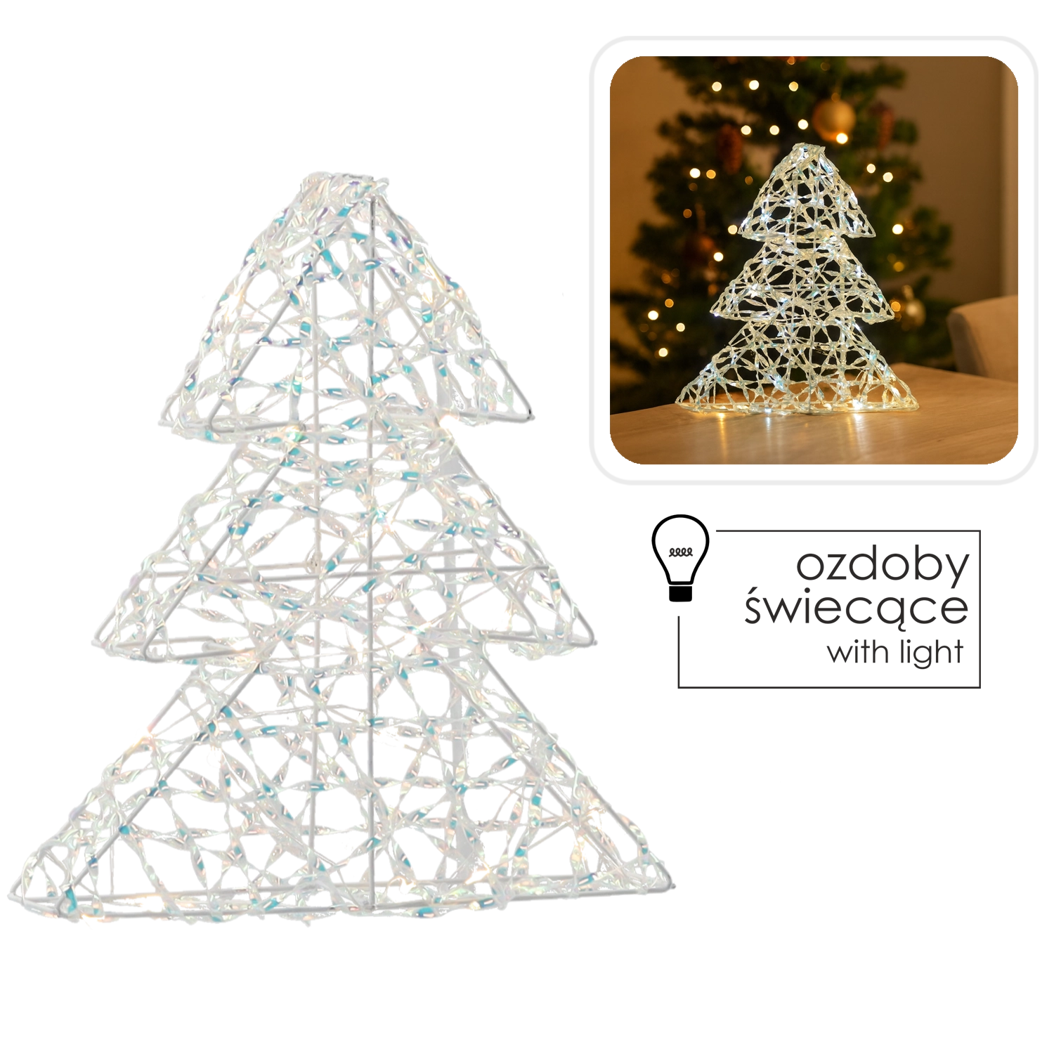 Create a fairytale holiday atmosphere at home with a gently glowing LED tree that enchants with its iridescent surface. It reflects light into many shades, giving the decoration an exceptional shine. The compact dimensions make it easy to place almost anywhere indoors.