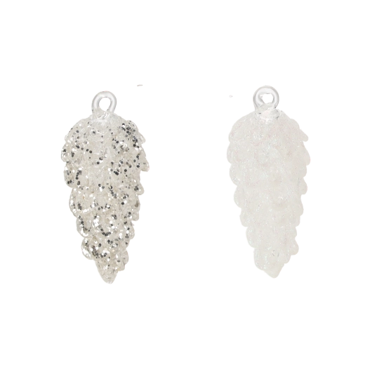 An elegant glass ornament in the shape of a white pinecone adds a subtle shine and a festive atmosphere to your tree. Thanks to the assorted designs and versatile white color, it pairs beautifully with other decorations. High-quality glass ensures long-lasting durability, the compact dimensions make decorating easy, and the practical set of 6 helps create a harmonious look.