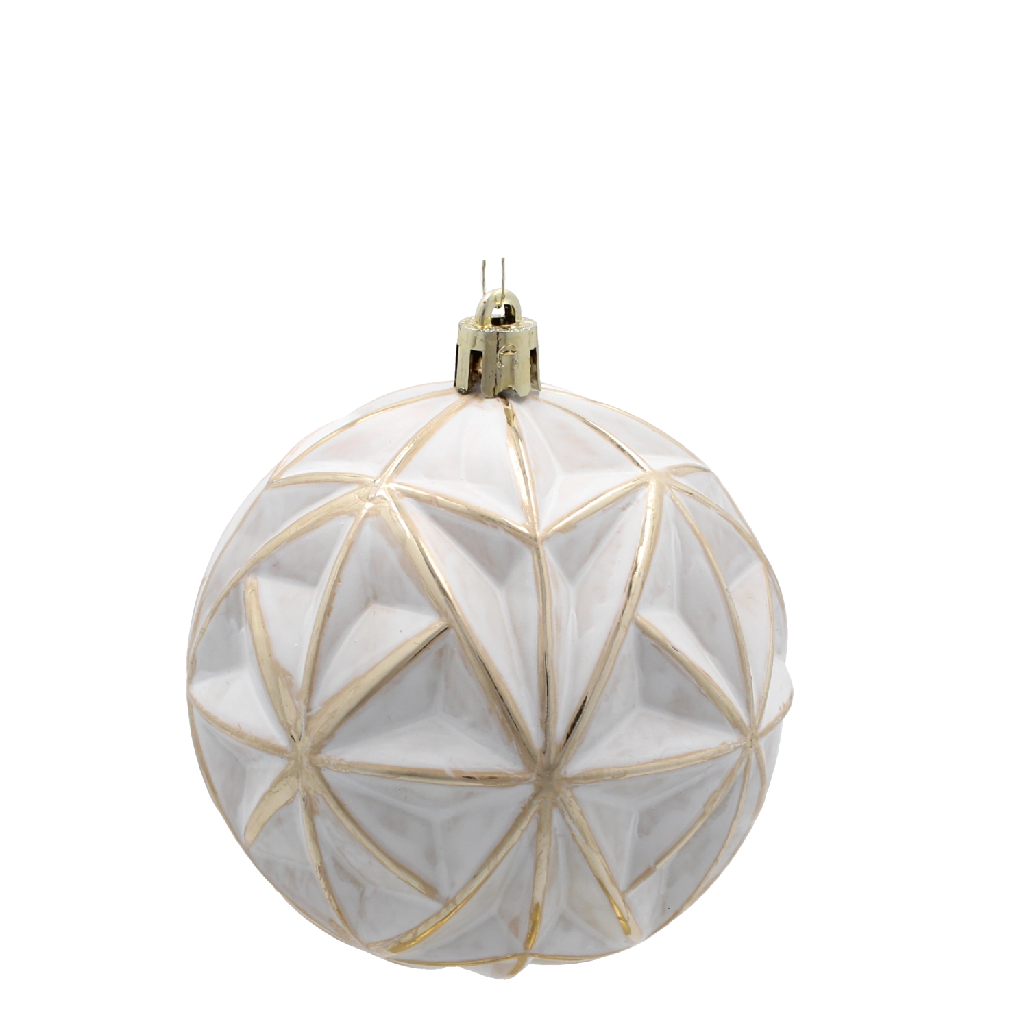 This stylish set of Christmas ornaments blends pure white and gold tones for a harmonious, refined look. Thanks to the larger 8 cm diameter, the balls stand out even on richly decorated trees, drawing attention with their shine and textured details.