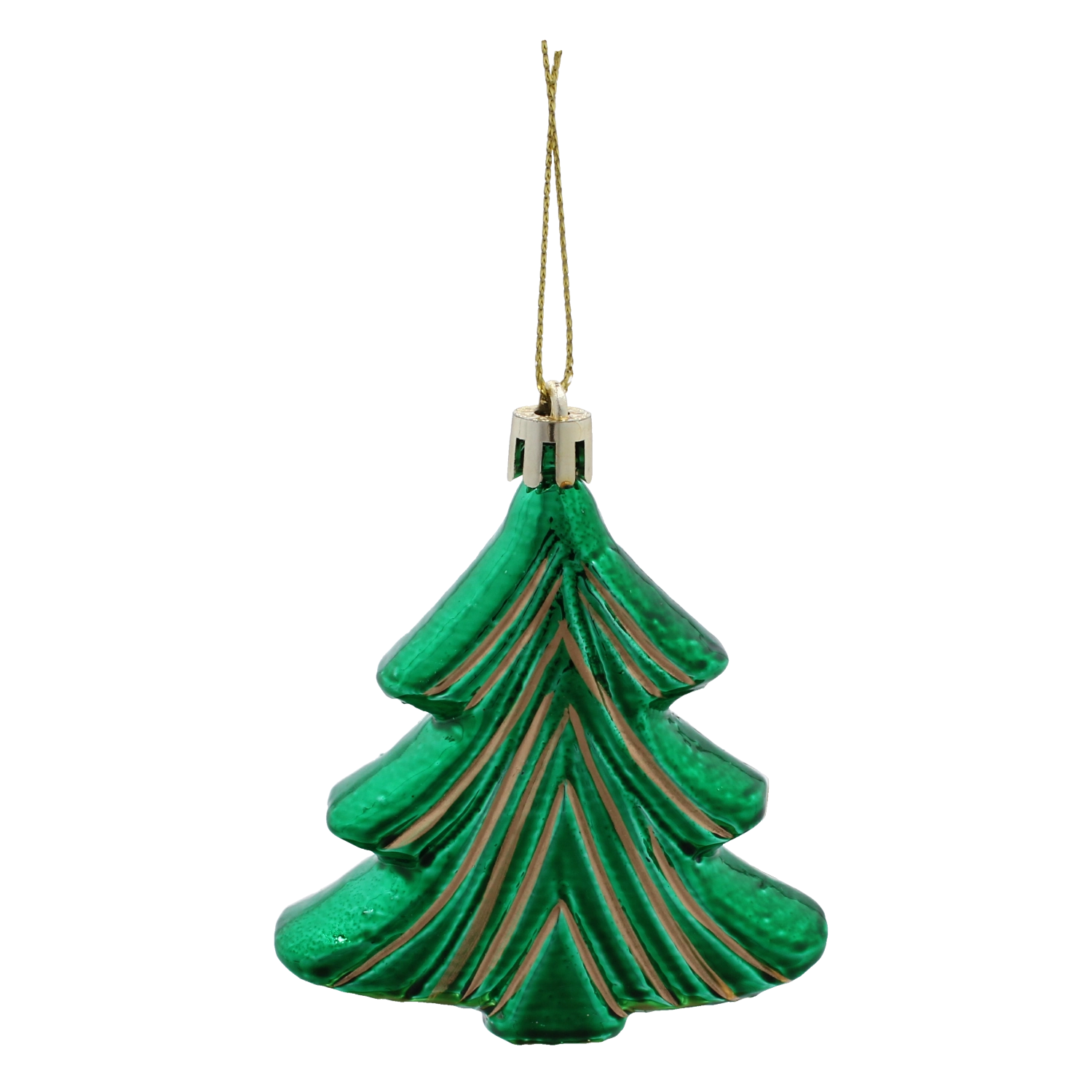 Tree-shaped ornaments with a glossy finish and golden accents give your tree a classic holiday touch and instantly draw attention.