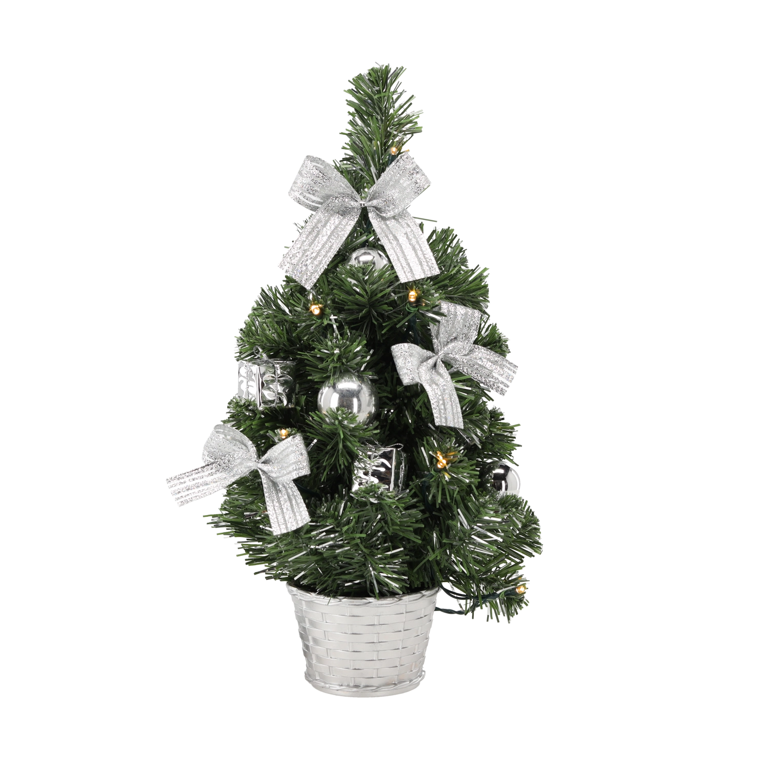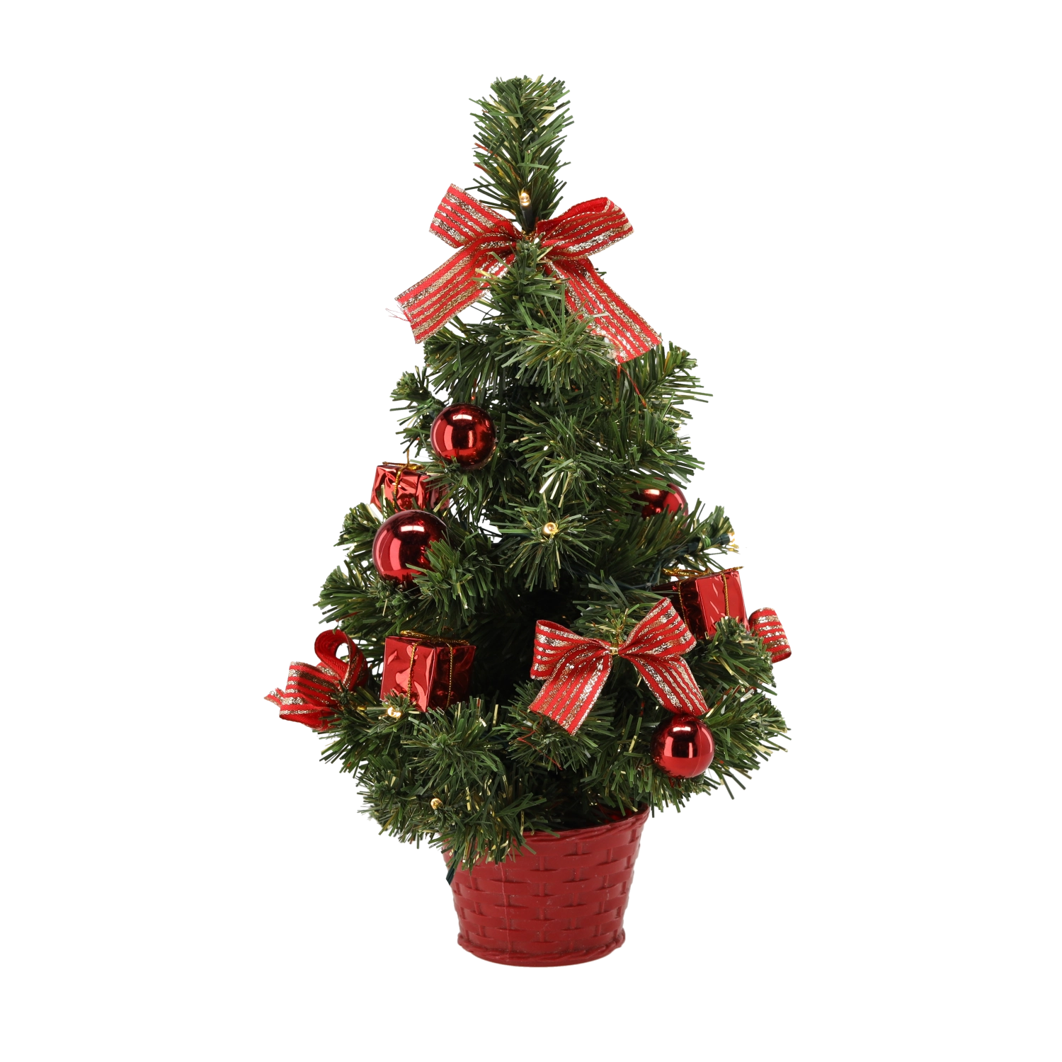 - Pre-decorated tabletop tree