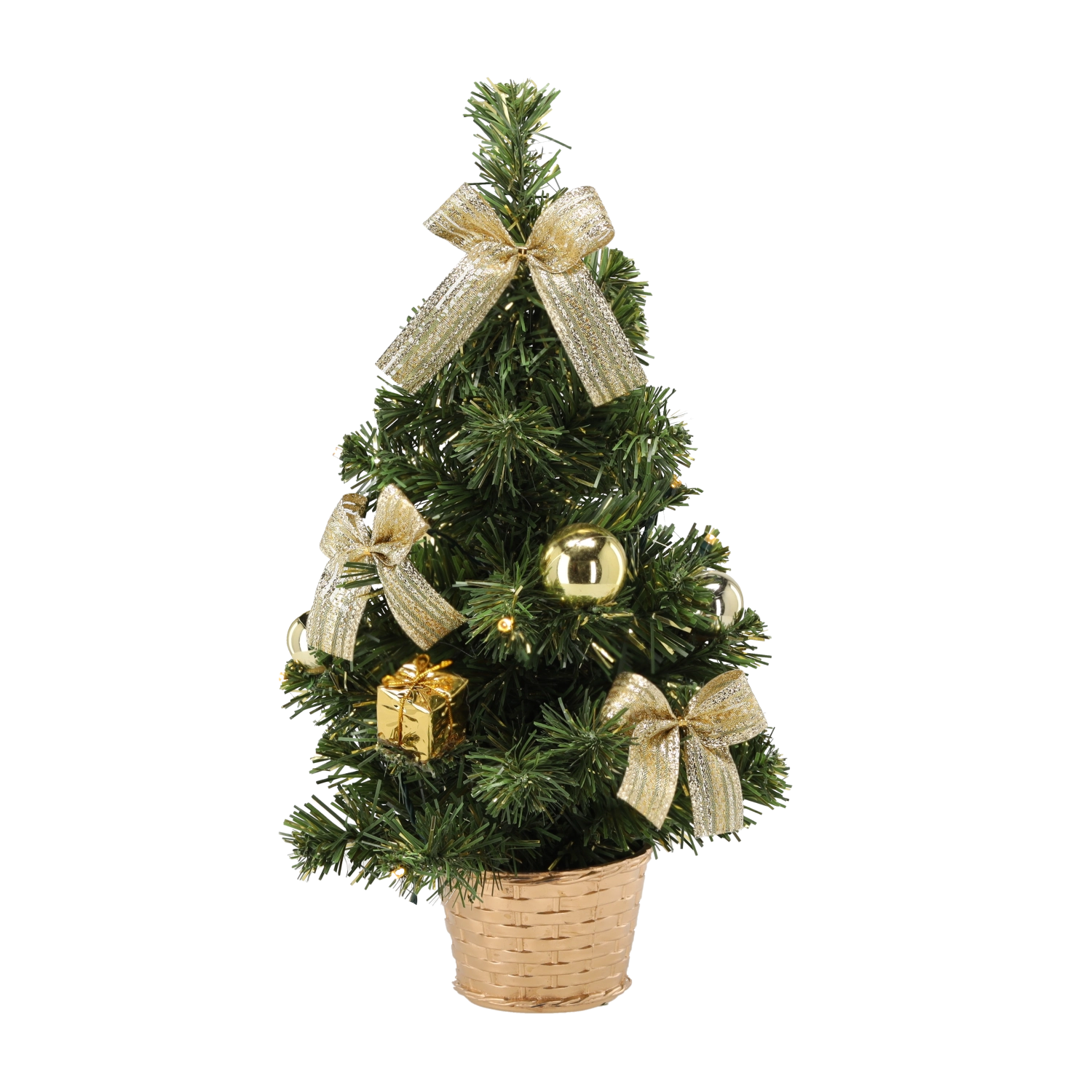 A compact Christmas tree with 10 LEDs and a height of 40 cm brightens every corner of your home. With pre-arranged decorations and energy-saving LED lighting, it’s ideal for a sideboard, table, or shelf. Available in various color variants to easily match your interior.