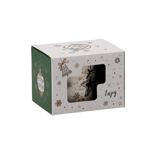 Treat yourself or delight your loved ones with a porcelain mug in a soft cream shade and festive details in gold, green, and white. The unique motifs of stars, bells, and baubles enhance the Christmas atmosphere and turn every hot drink into a pleasant ritual.
