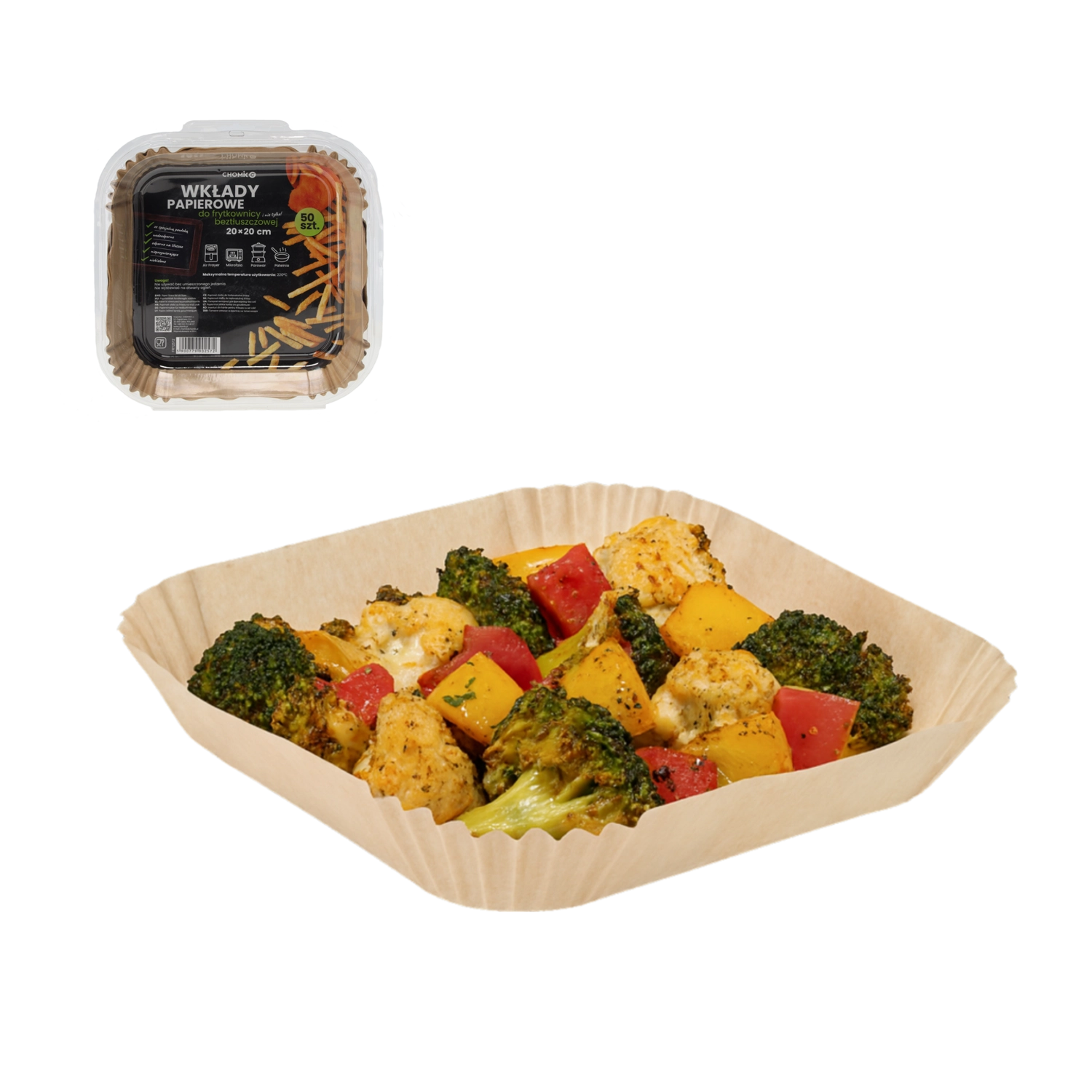Keep your air fryer perfectly clean with practical unbleached paper liners. They are non-stick, water- and grease-resistant, and withstand temperatures up to 220 °C. Suitable for air fryers, microwaves, steamers, and pans, with FDA, LFGB, FSC certifications for safe food contact.