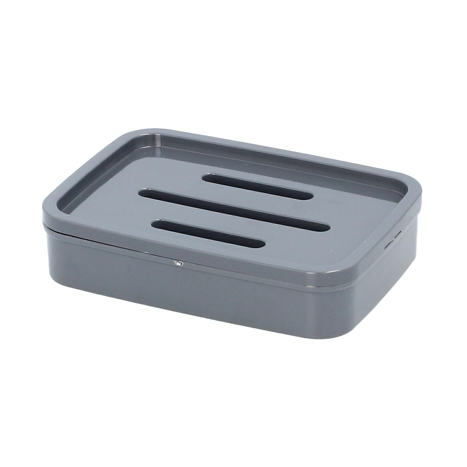 Three elongated slots in the lid/insert reliably channel water to the lower section, keeping the soap dry and firm.