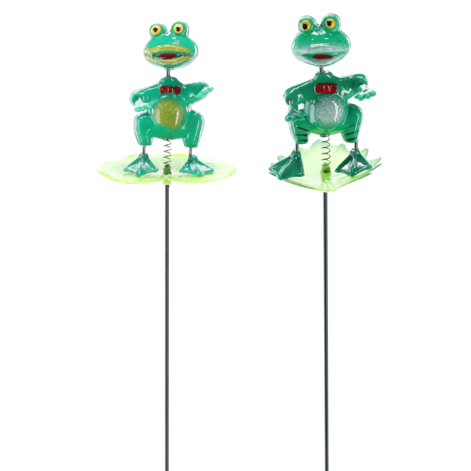 The figurine is mounted on a spring, so it gently bobs with a touch or breeze for a lively effect.