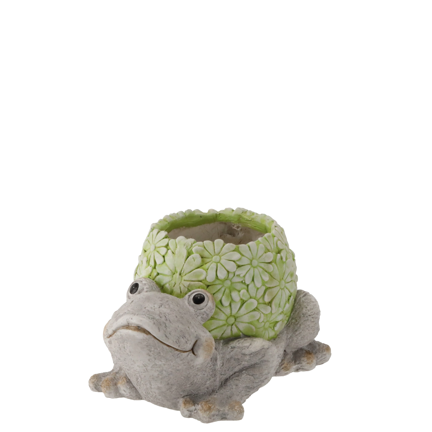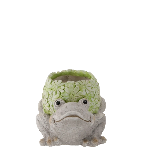 Create a cozy nook with this decorative frog-shaped planter featuring detailed craftsmanship and a subtle floral relief. Its stylish look pairs easily with both natural and modern elements, making it perfect for the garden, terrace, balcony, or indoors.