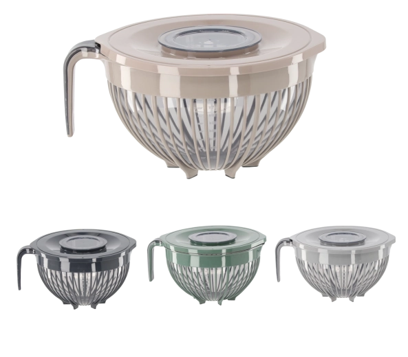 The LINEA 3 L kitchen bowl is a reliable helper for preparing salads, doughs, and creams. Thanks to high-quality, long-lasting plastic, it withstands everyday use, and the ergonomic handle ensures a comfortable grip even during intensive mixing. The non-slip base provides confidence and stability on the countertop.